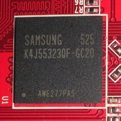 и 128Mb GDDR3 памяти в виде 4-х микросхем в корпусе BGA и временем доступа 2.0ns. Чипы K4J55323QF-GC20 производства Samsung были выпущены на 25-й неделе 2005 года.