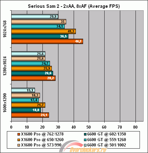 | Serious Sam 2 | 1024x768 | 2xAA 8xAF | +17.0% | +21.1% | +26.6% |