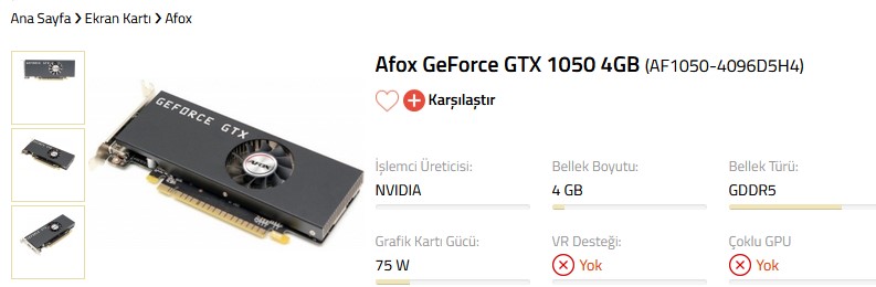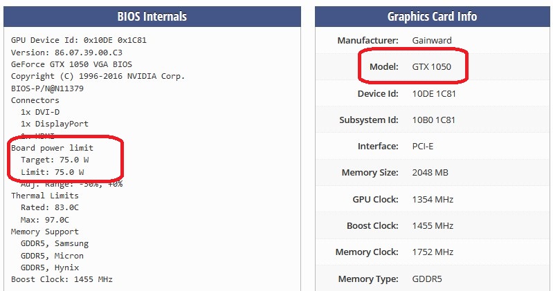 Интересовали официальные характеристики и возможности видеокарты. Они все "одинаковые", только производительность может отличаться до 20% на пустом месте. Часто видеокарты, выпущенные во время майнинг-бума, идут на GPU от старших видеокарт с заниженными частотами. Например, у той же компании AFOX ее единственная официальная GTX 1050 идет с видеобуфером в 4 Gb, что крайне редкое явление.