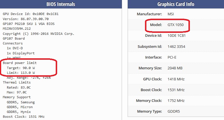Иногда попадаются отдельные "разогнанные версии" с увеличенным Power Limite. Фантастические видеокарты, что стабильно работают в режиме OverBoost до 1980 Mhz, а при удачном стечении обстоятельств и тонкой доводке стабильно держат 2130. При таких частотах видеокарта быстрее 75% GTX 1050ti. Приятная производительность.