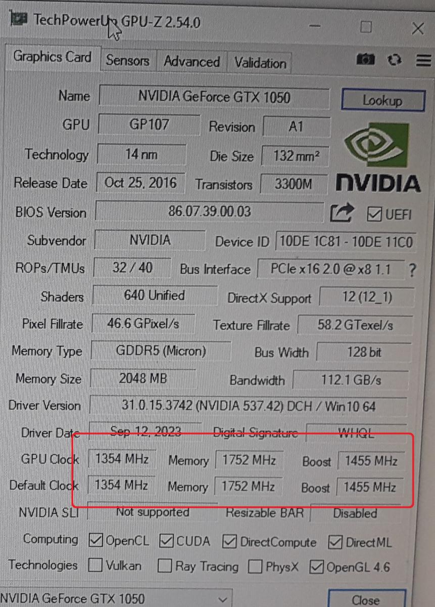 У AFOX GeForce GTX 1050 есть дополнительный разъем питания. Единственная причина его наличия — это "модифицированный чип" или разогнанная версия. По гугл-данным, которые часто бывают недостоверными, а официальных нигде нет - частоты стандартные. Всю правду нам скажет только вскрытие.