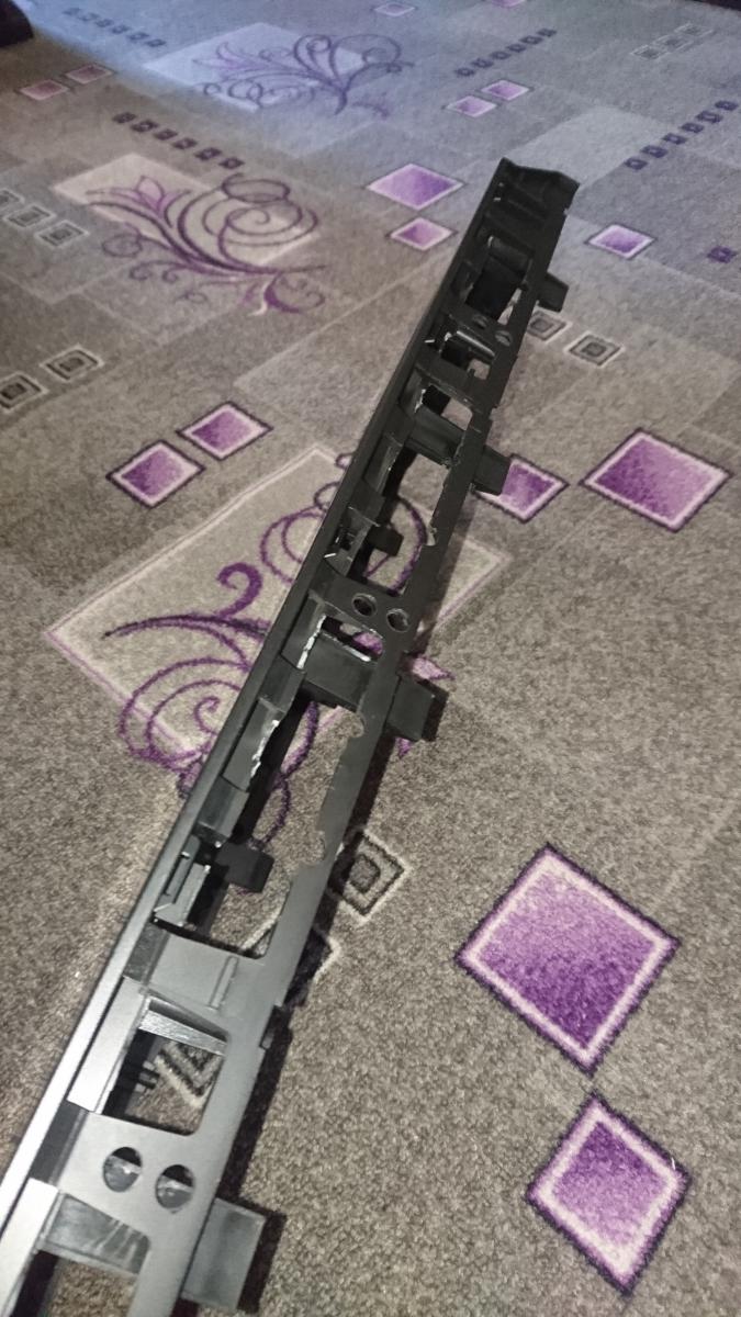 Пилил электролобзиком, пилкой по металлу и на низких оборотах. Пилить этот сэндвич из анодированного алюминия и пластмассы то еще удовольствие. Все места, которые можно поцарапать или повредить в процессе, рекомендую заклеивать малярным скотчем. Я также заклеил двумя слоями малярного скотча подошву лобзика. Все получилось довольно аккуратно. Края алюминия обработал, чтобы не резали руки, закрашивать не стал. Снизу не видно, да и краски подходящей в наличии не было. Усиливающая вставка обтянута в черную термоусадку, чтобы в глаза сильно не бросалась. Крепится она на 4 болта М2.5 из нержавейки с головкой под шестигранник.