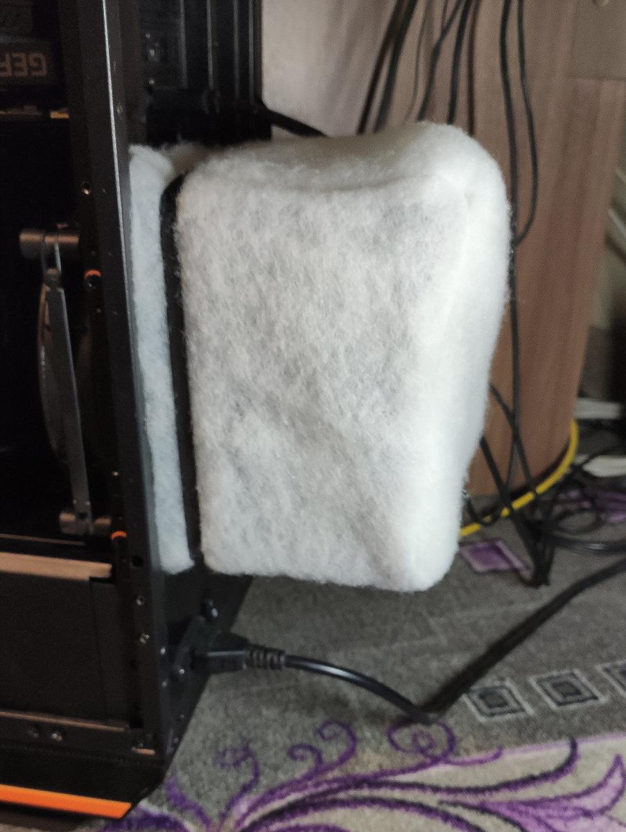 Реализацию этой затеи останавливало то, что запускать «забортный» воздух напрямую в корпус я не хотел, так как уже за несколько дней в корпусе будет много пыли. Я давным-давно не использую корпуса без фильтров воздуха на входе. Хотя бы мелкая сетка, но должна быть. Но если просто поставить мелкую сетку на заборное отверстие, то мы просто «задушим» вентилятор, его производительность сильно упадет, и вся затея не будет иметь вообще никакого смысла. Поэтому пришлось мудрить. Решил соорудить импровизированный короб и обтянуть его специальным синтепоном, который отлично фильтрует даже мелкую пыль, но не оказывает большого сопротивления потоку воздуха. Плюс ко всему короб даст нам возможность существенно увеличить площадь фильтра, тем самым мы «задушим» вентилятор по минимуму.