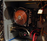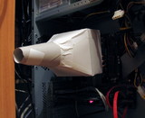 Зачастую проблема современных кулеров с кучей теплотрубок кроется в маленьком межрёберном расстоянии, а от него никуда не денешься, поскольку по-иному площадь рассеивания в ограниченном объёме не увеличить. Вентиляторы стараются продуть этот забор, но производительности явно не хватает (не берём во внимание мегаломаньяческую Дельту 220CFM, её ещё добыть надо). Однако в любом доме есть источник, способный разогнать ваш радиатор до предела его возможностей. Пылесос.