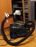 Учитывая КПД пылесоса, он будет сам выделять приличное количество тепла, поэтому не мешало бы направить его выдув в окно или вообще выставить его на балкон во избежание нагрева воздуха в комнате. При пробном старте температура опустилась почти до комнатной. Хм, вселяет надежды!