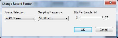 Окно смены формата записи:
