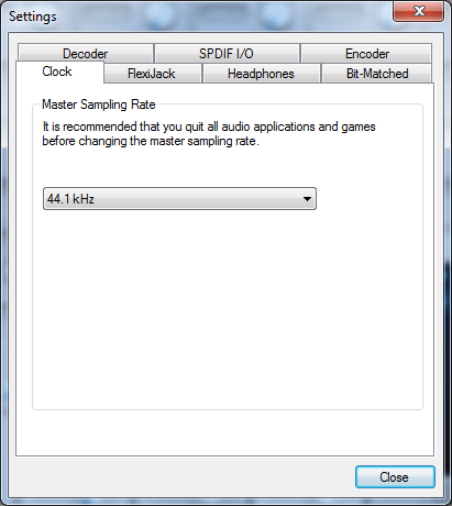 На выбор доступны частоты 44.1, 48, 88.2 и 96 кГц. Выбор частоты 88.2 или 96 кГц делает недоступными insert-эффекты. В целях отсутствия ресемплинга при записи и воспроизведении опорную частоту рекомендуется устанавливать равной частоте семплирования воспроизводимого или записываемого материала. В случае записи или воспроизведения через DirectSound, WaveOut или WASAPI для отсутствия ресемплинга необходимо выставить такой же формат в свойствах Windows (рассмотрено в разделе прочих настроек). При воспроизведении через ASIO опорная частота чипа меняется автоматически.