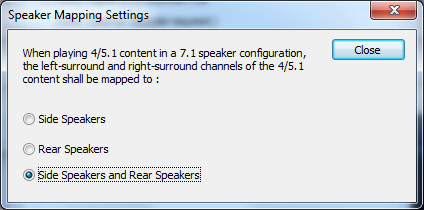 Нажатие кнопки 4/5.1 content speaker mapping settings вызывает следующее окно: