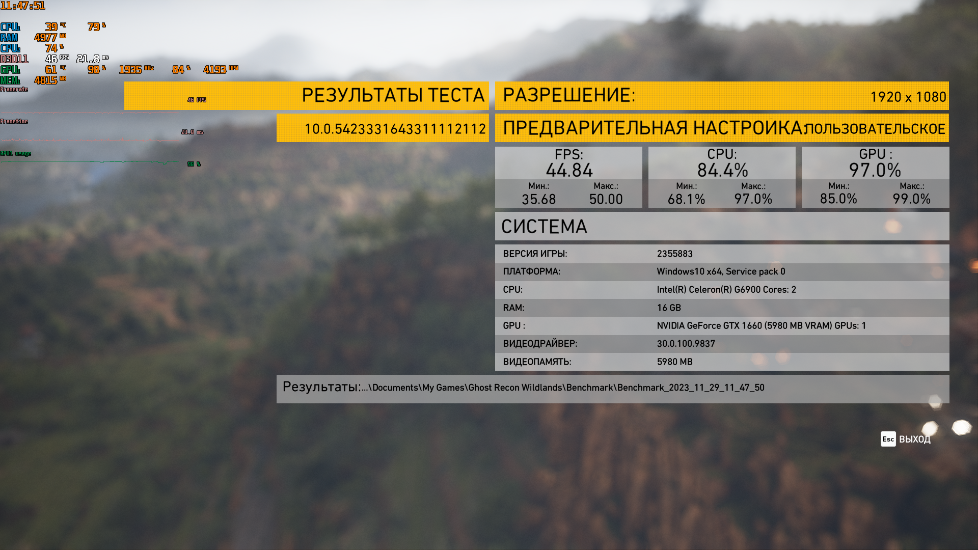 Tom Clancy ghost recon-Wildlands ,встроенный бенчмарк,настройки ультра всё