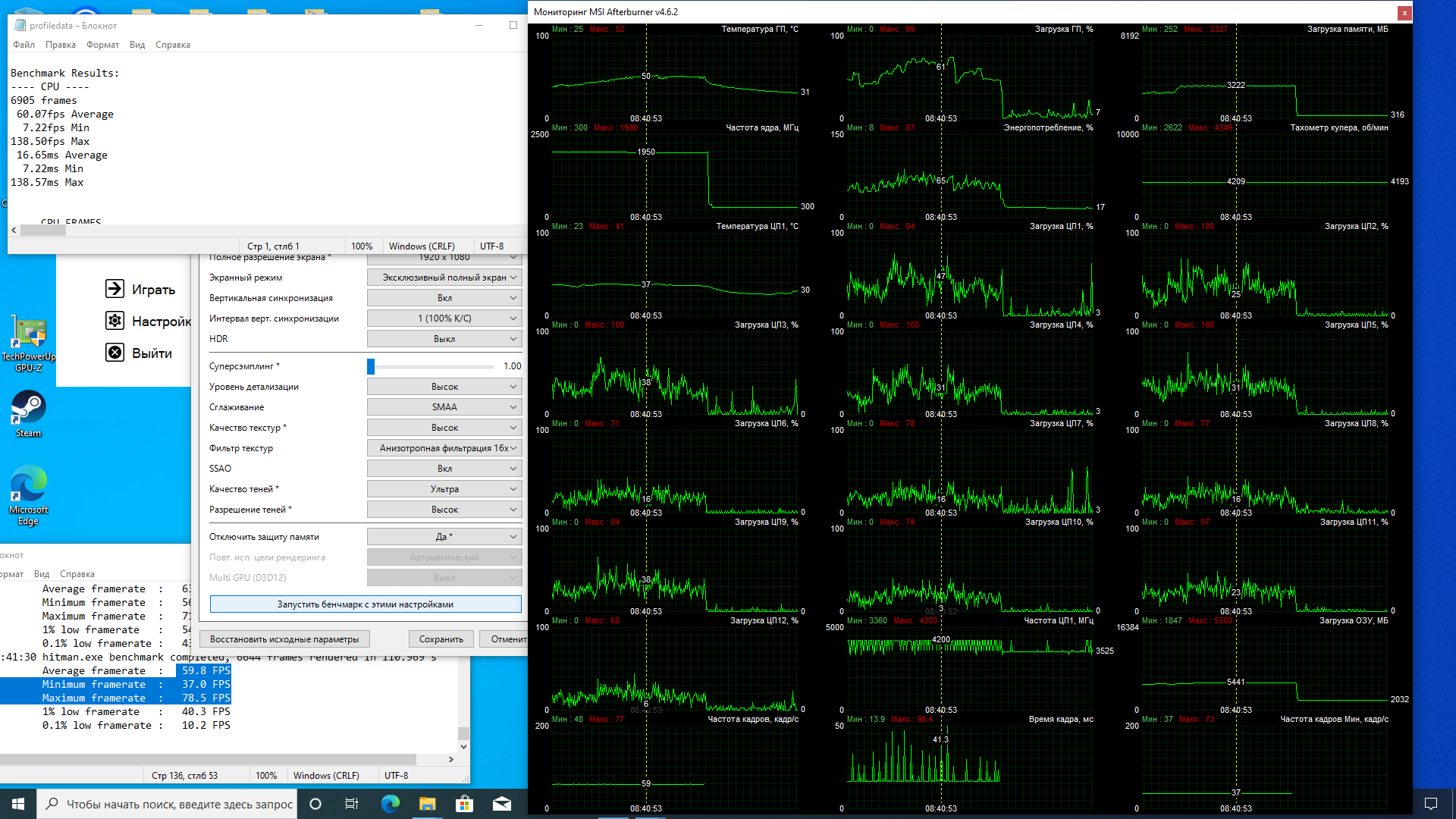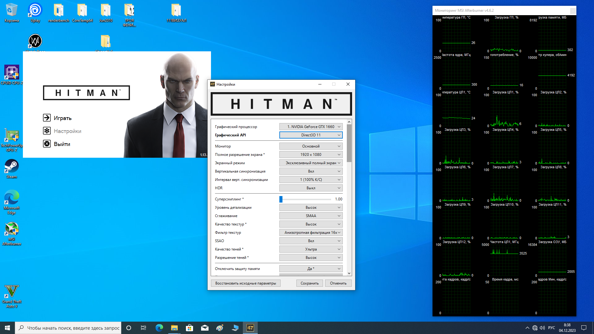 хитман 16,бенч,1920х1080 ультра