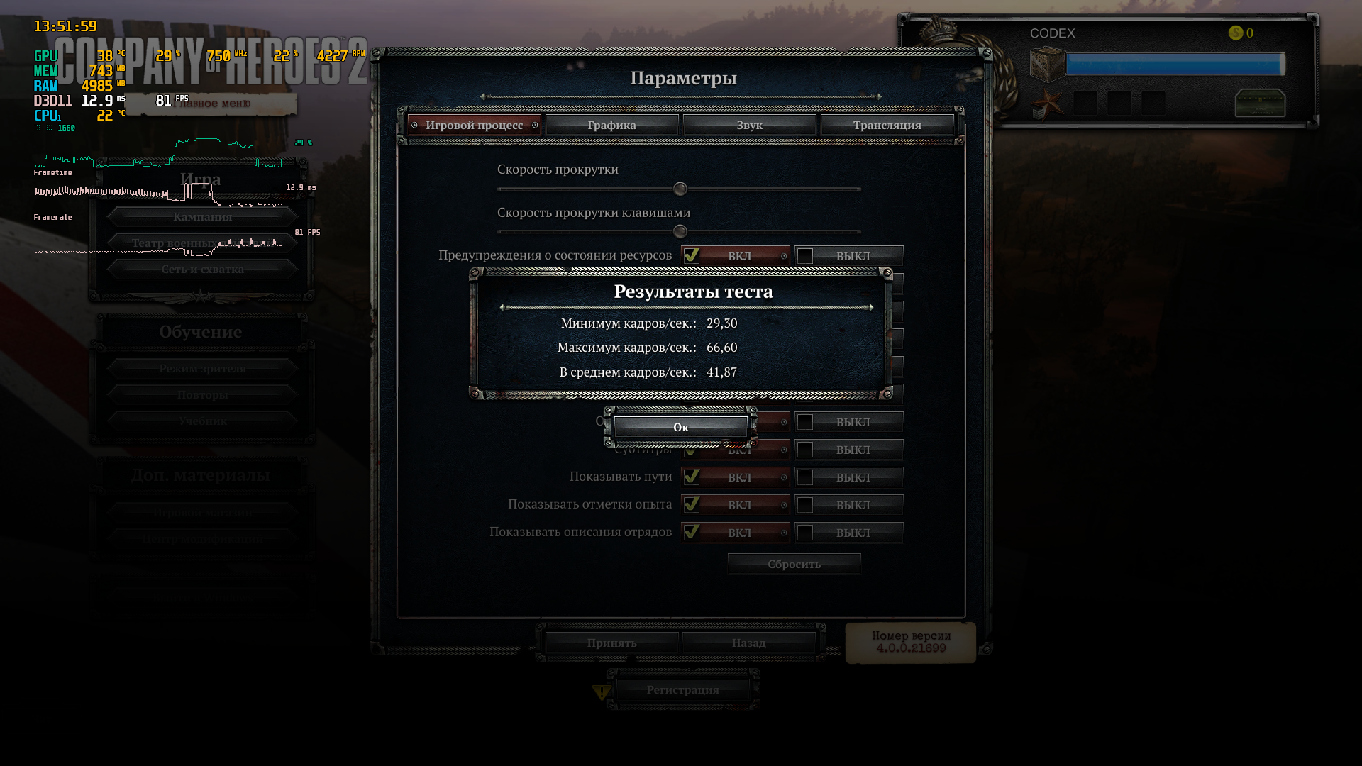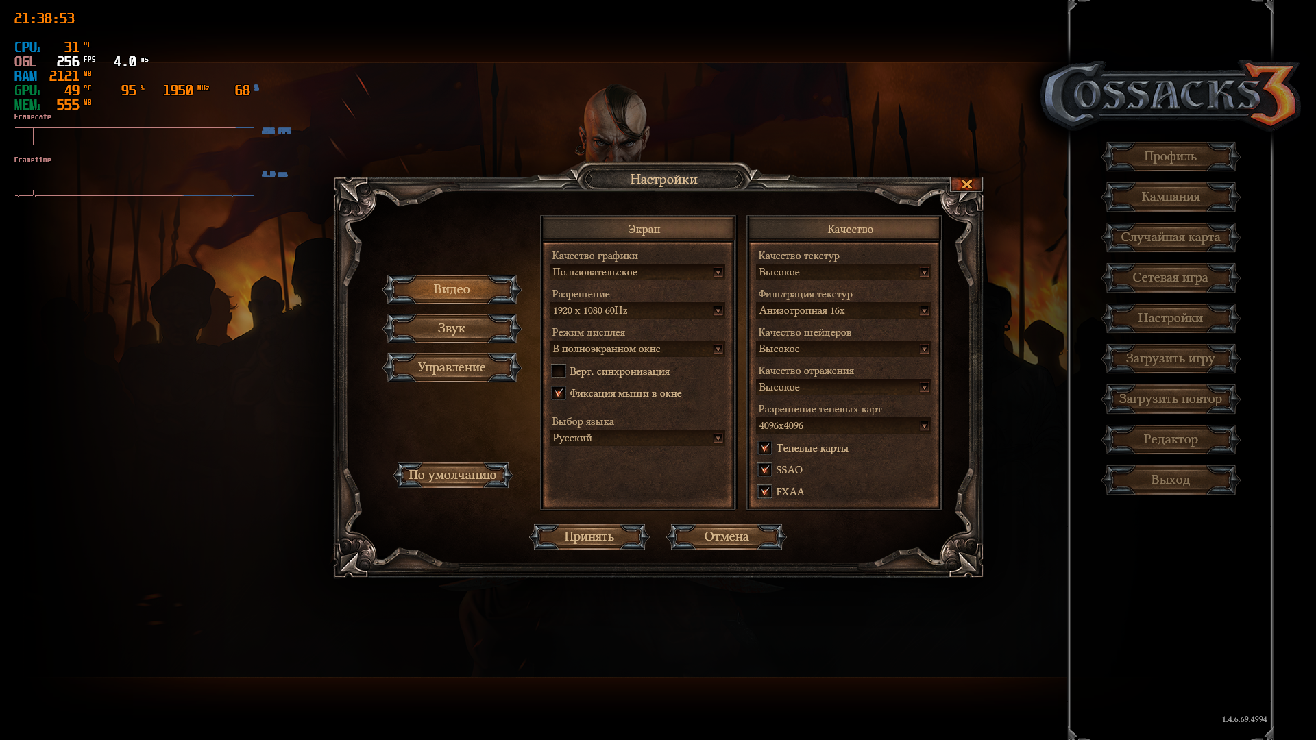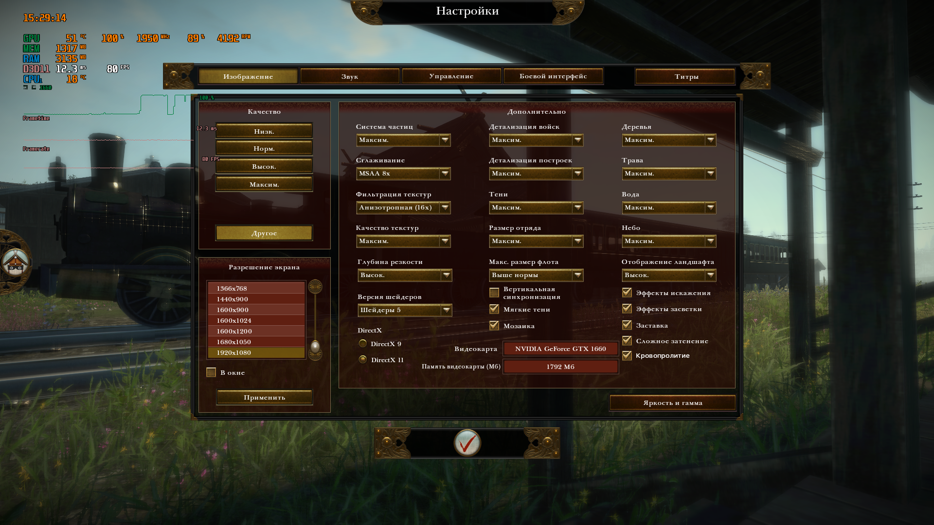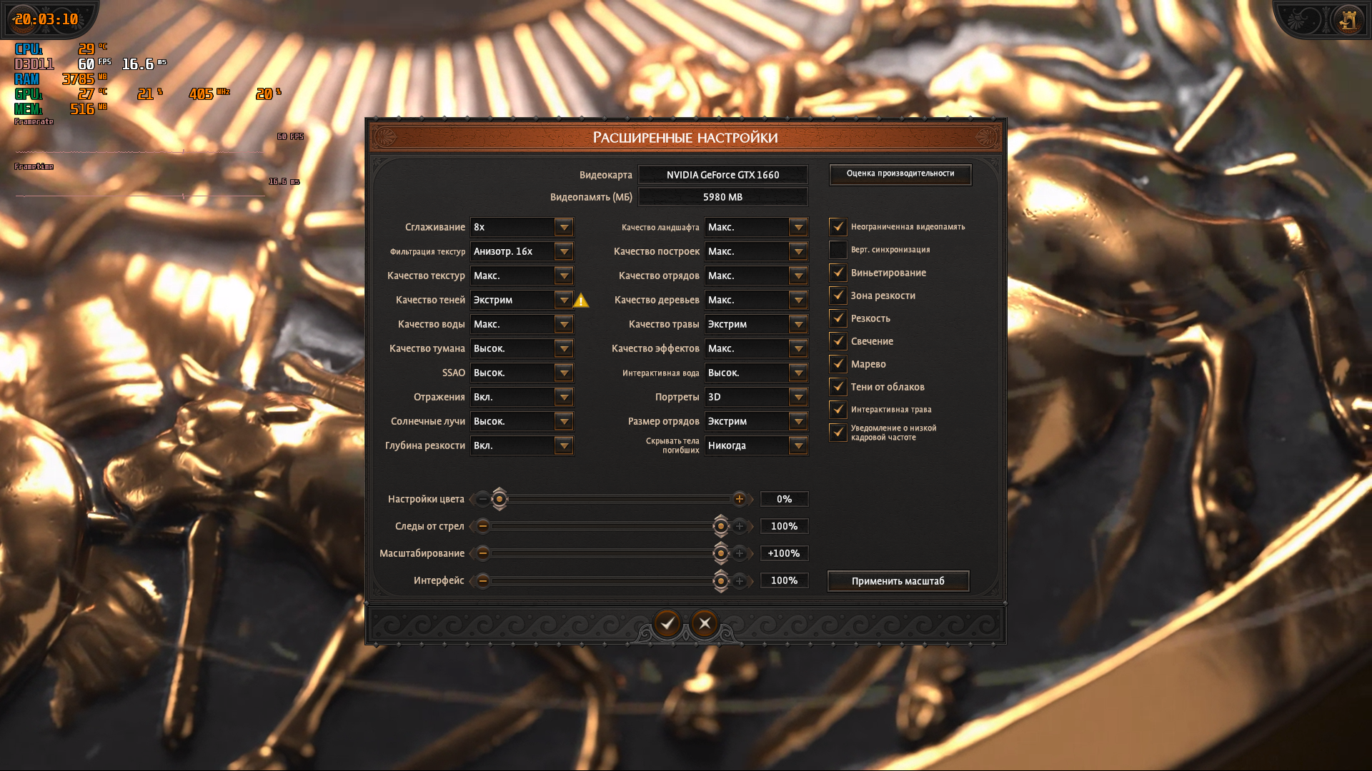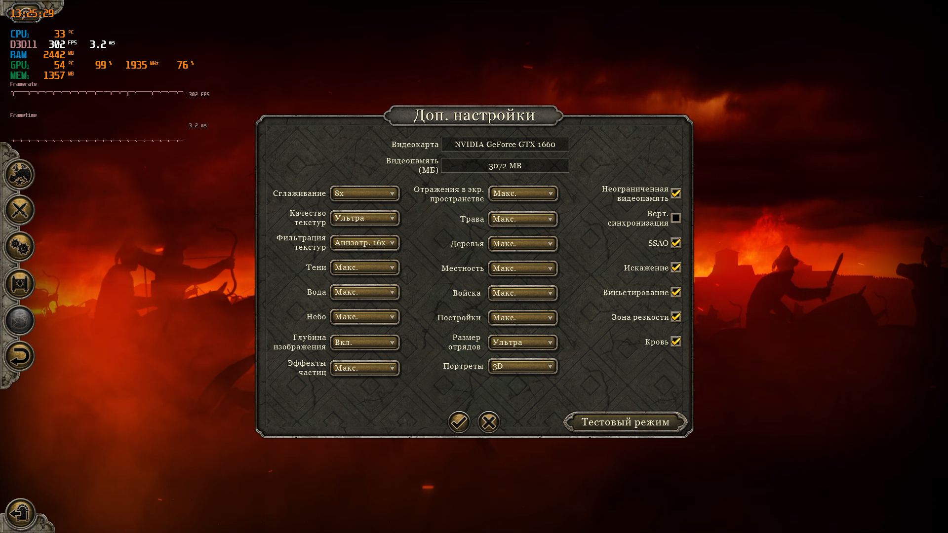 настройки в тотал вар и ультра 8хмса,и по оверклокерс ру(чтобы сравнить процессоры и видеокарты),