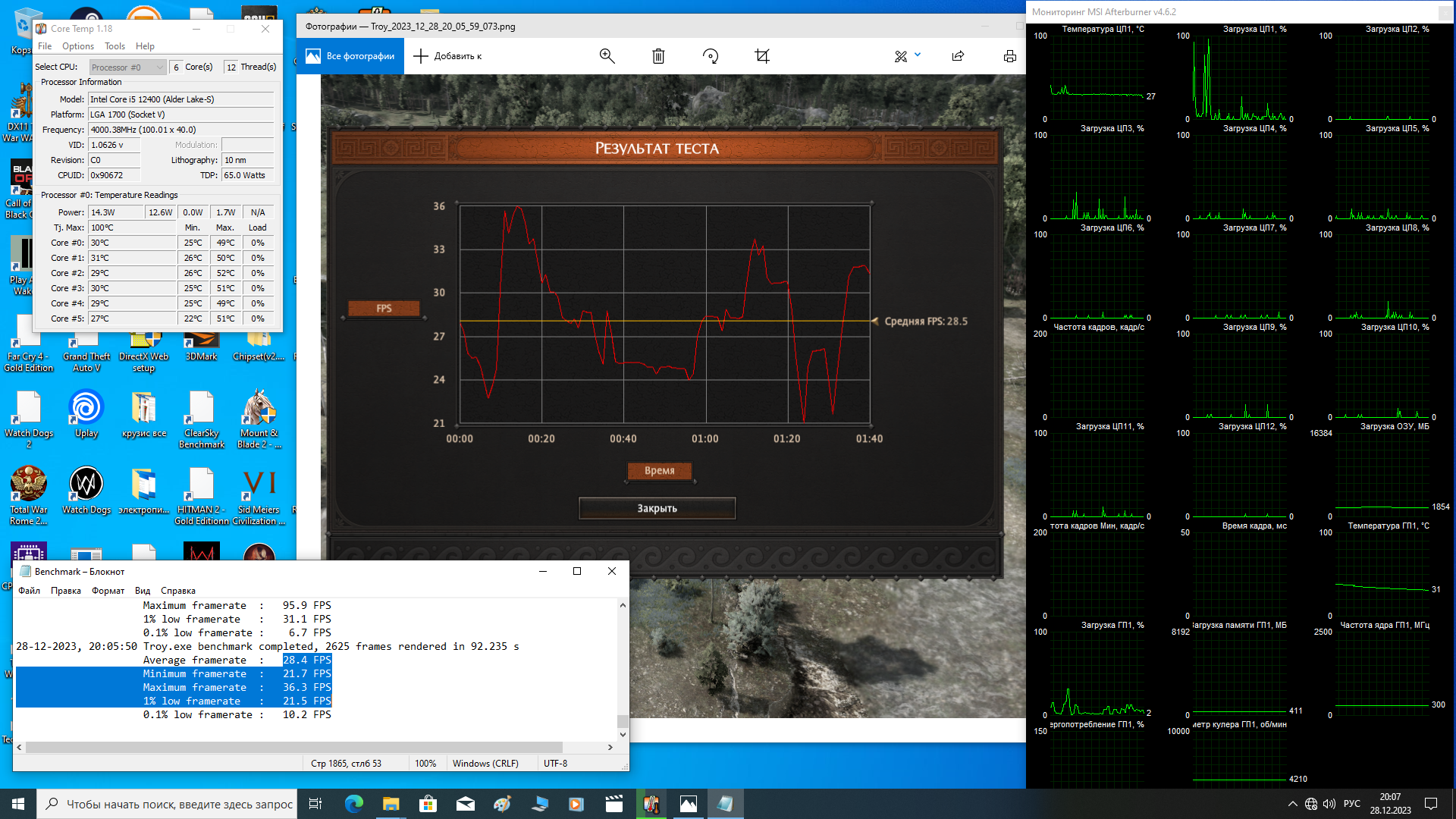 Тестирование core i5-12400box 4Ghz -6c, amd fx-8320e 4Ghz x 8 core в total war игровых бенчмарках