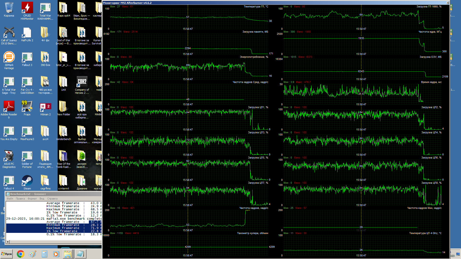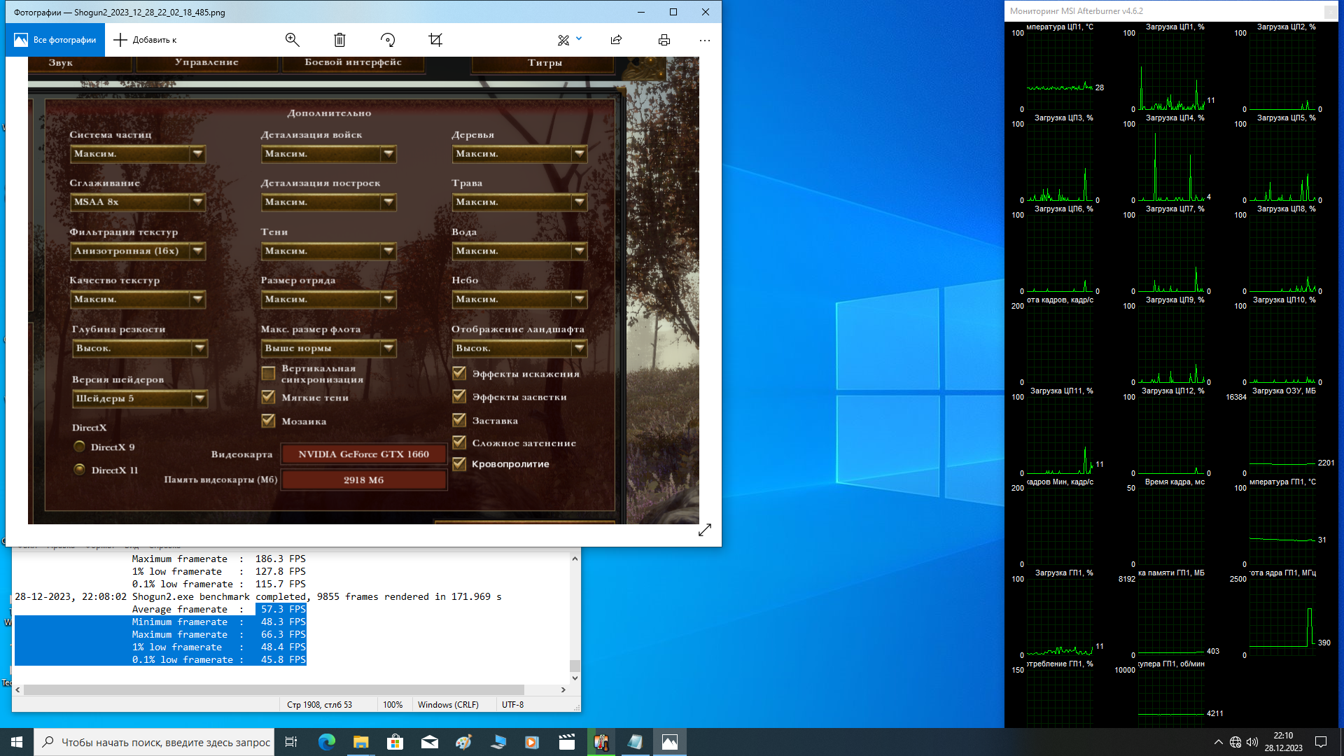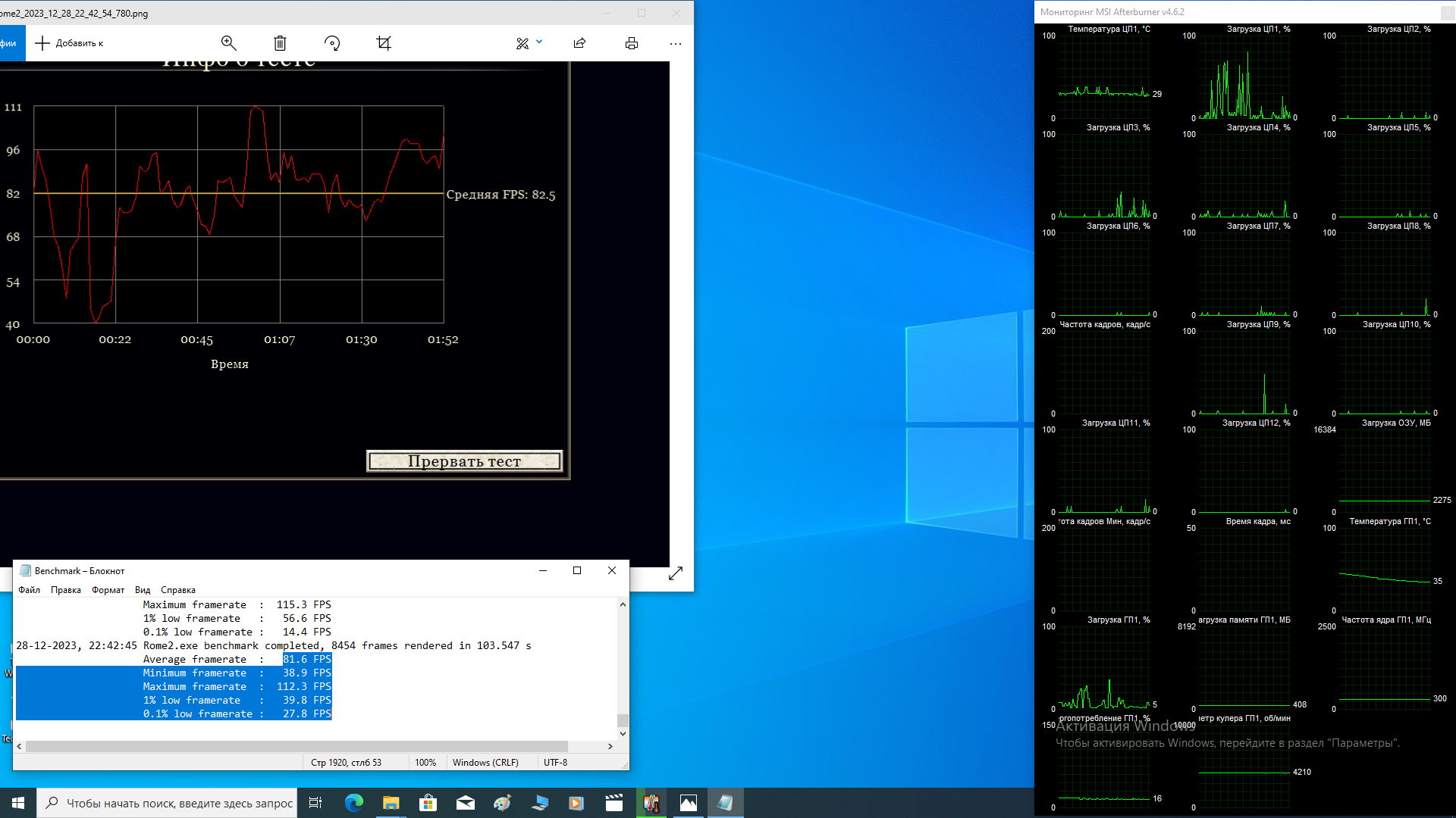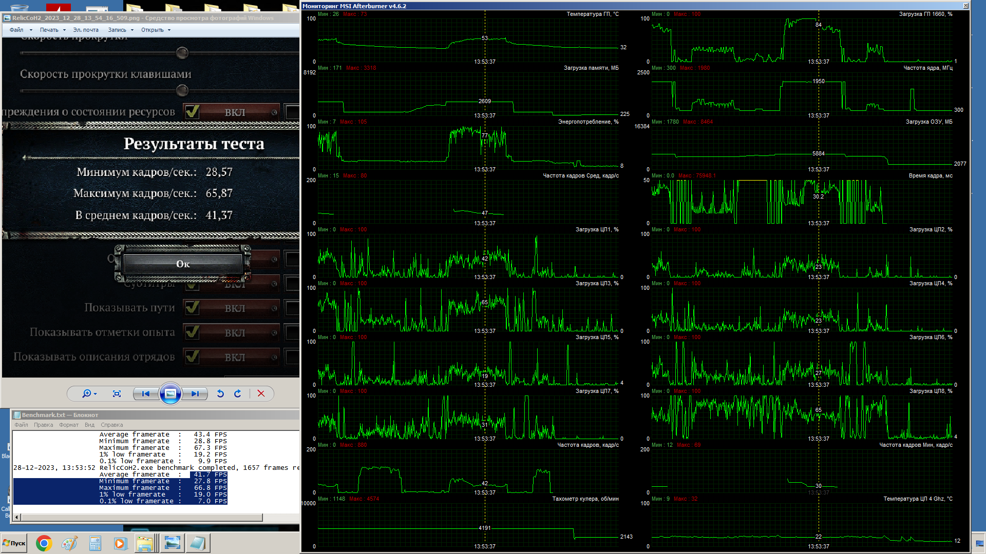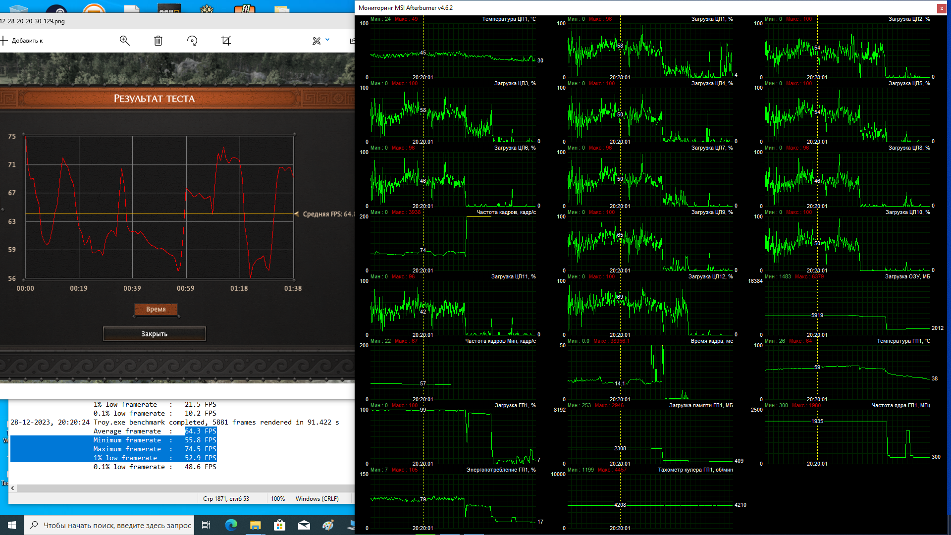 результат и на экране,сразу после прохождения бенчмарка,и лог игры и мси