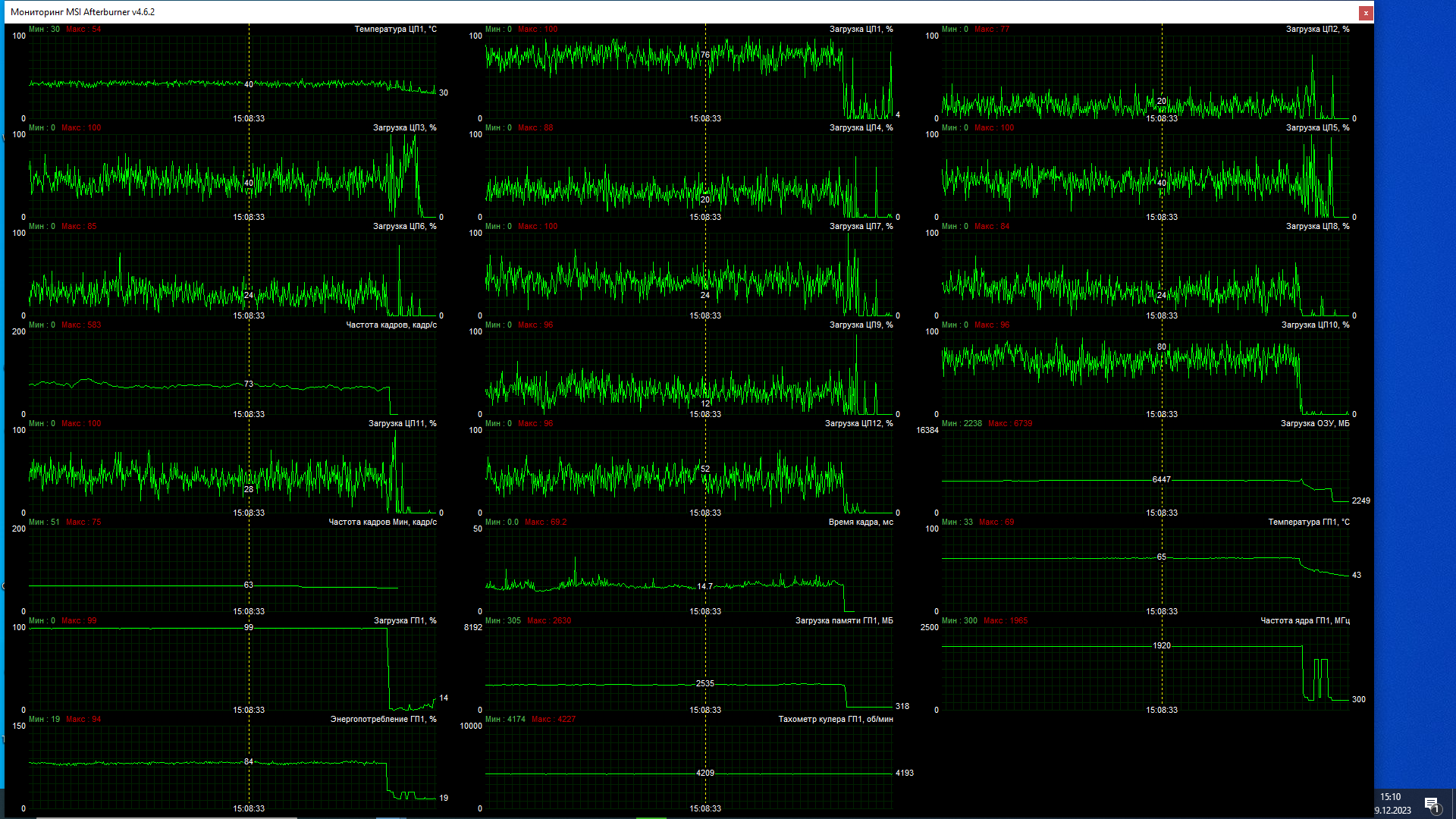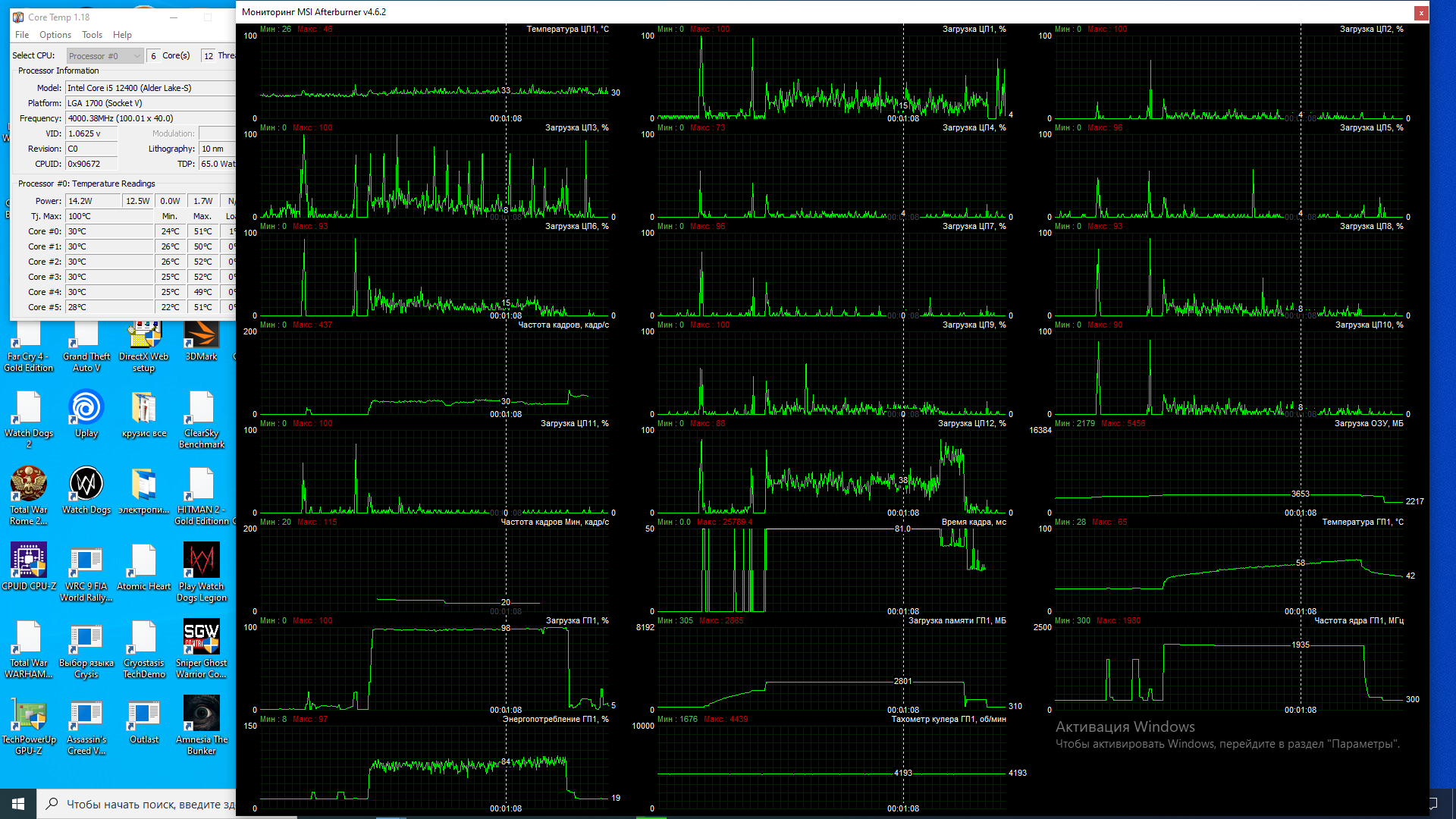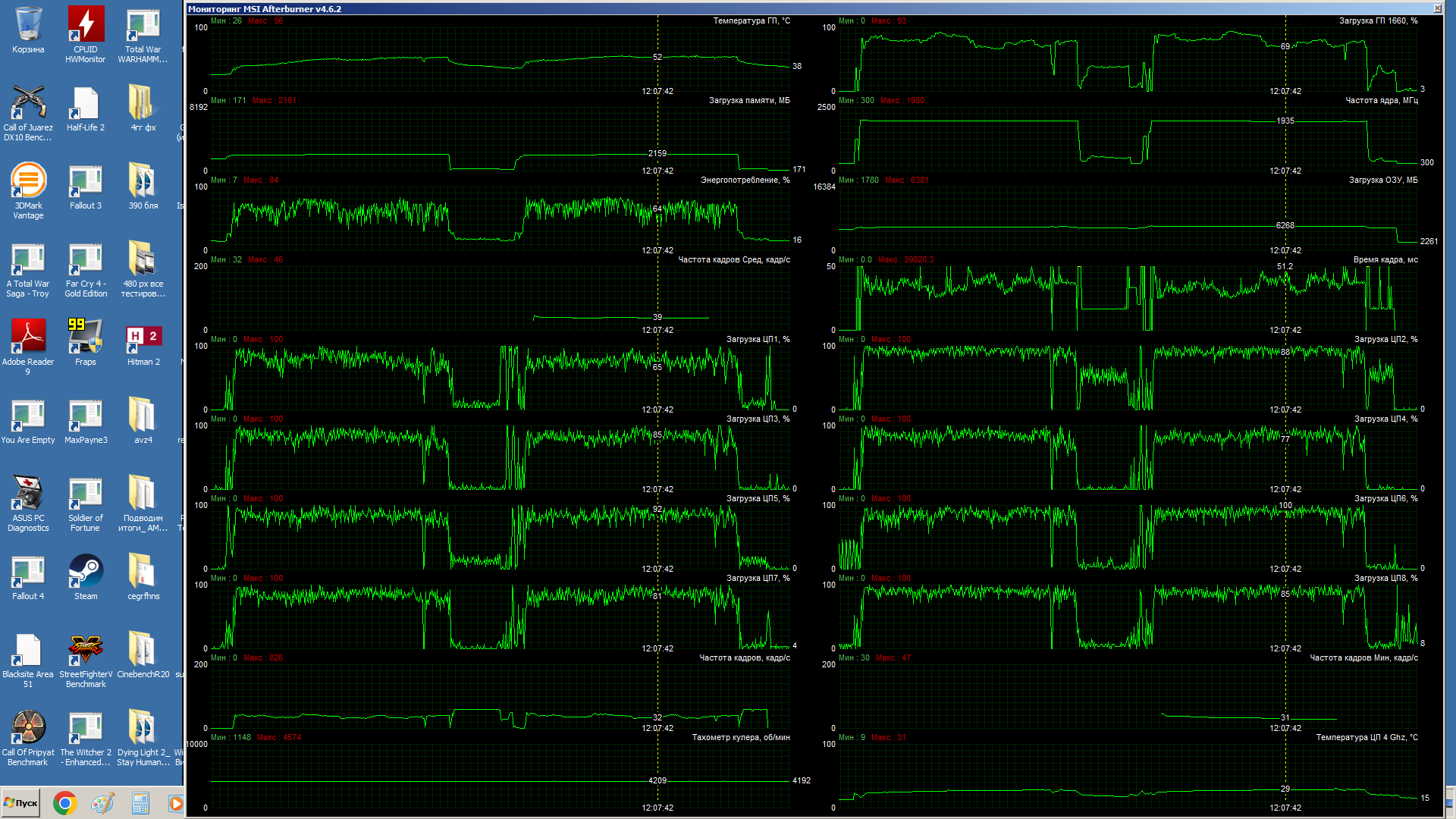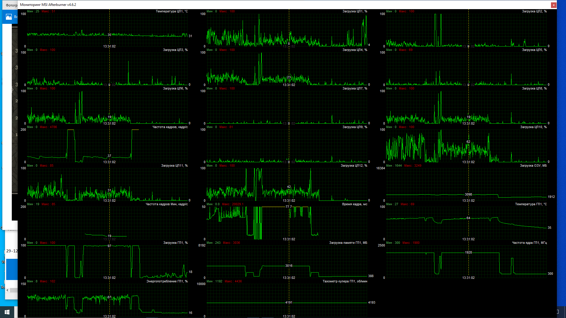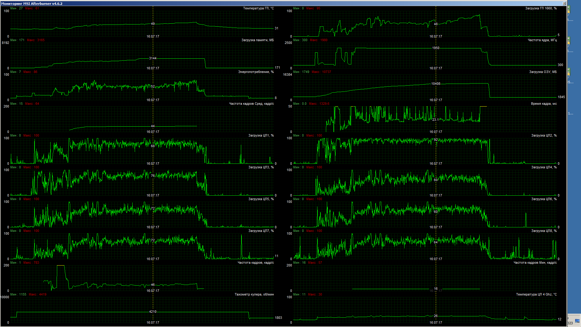 на мси афтербернер,видно на графиках,для игры на максимальных настройках,нужна мощная видеокарта