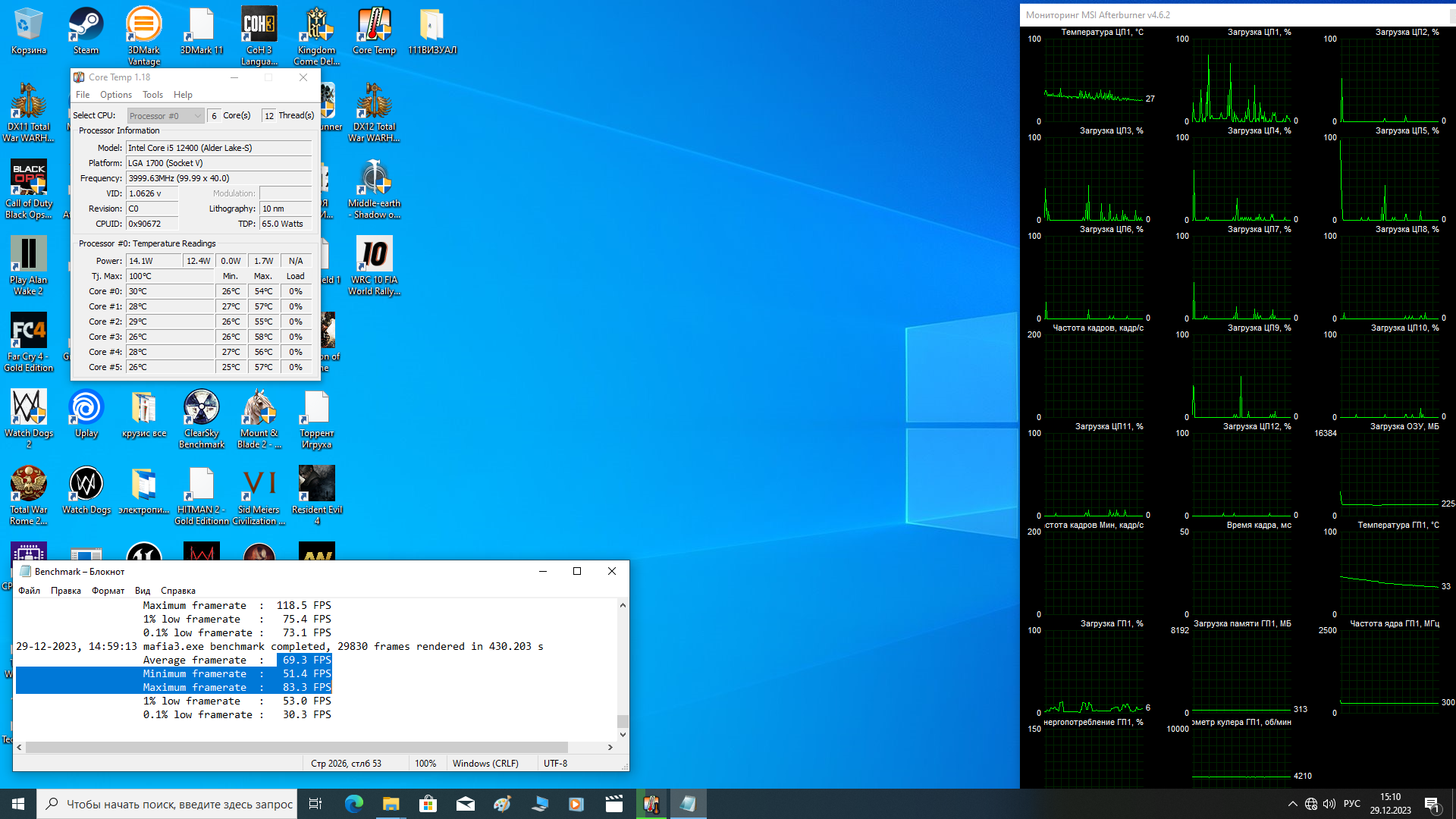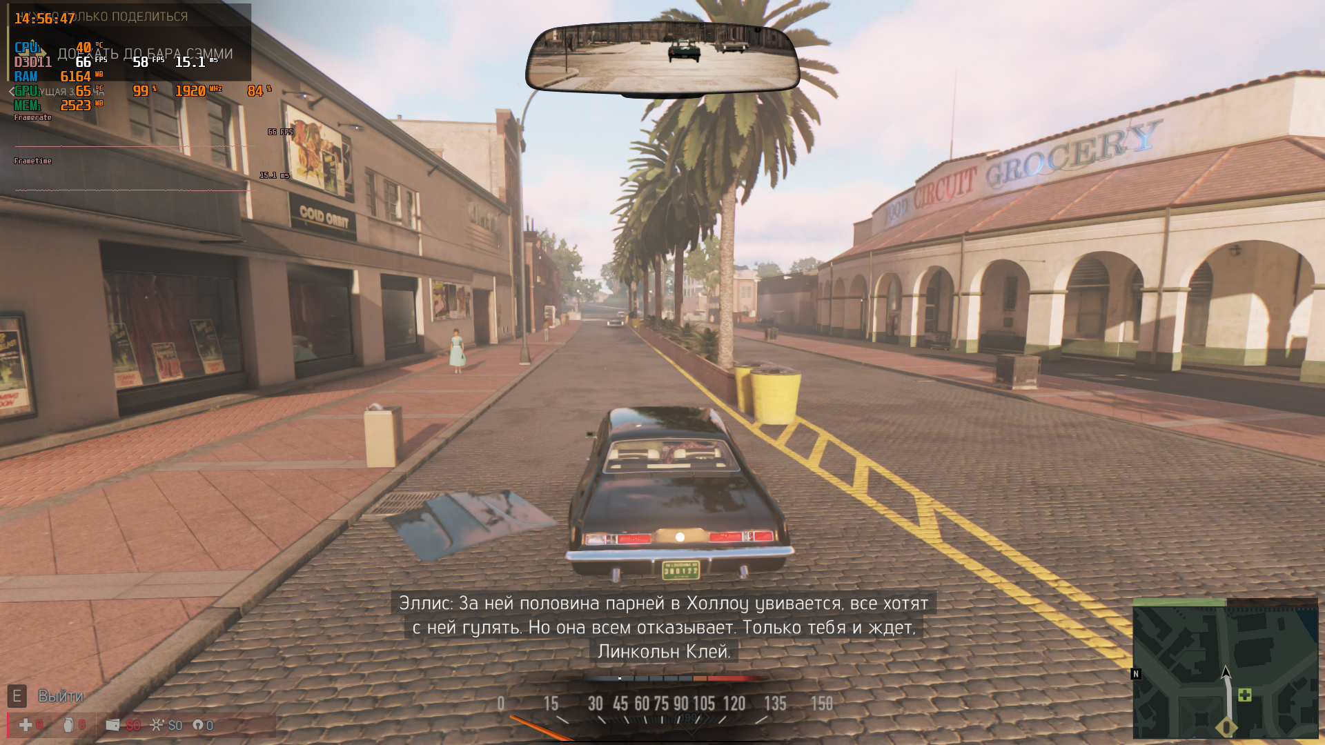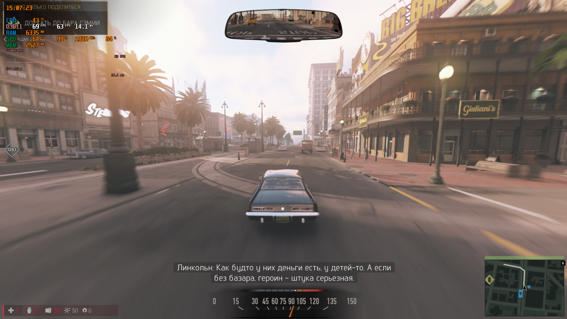 коре 5 12400 в игре мафия 3,настройки все максимум высоко,поле зрение 90,1920х1080,долгая поездка по городу,день