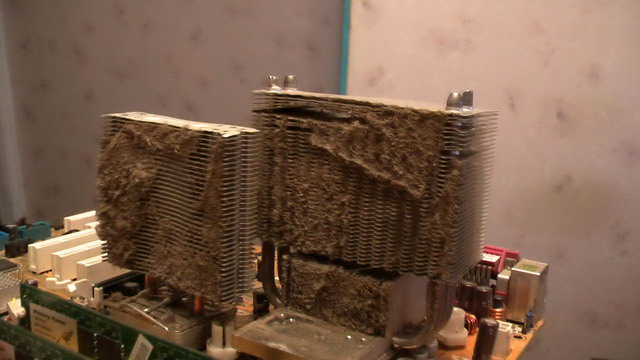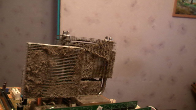 В результате всё это напомнило мне одну старую историю. Когда ко мне обратились знакомые с проблемой что у них зависает комп в игрушках, а так работает. Причём это началось именно летом с наступлением жару. В результате осмотра радиатора после сьёма радиатора, я с удивлением обнаружил просто слой войлока из пыли, который полностью блокировал работу вентилятора. В результате чего пентиум в играх перегревался за 100 градусов и тупо отрубался, к слову, с камнем тогда НИЧЕГО не произошло, несмотря на многократный экстремальный перегрев.