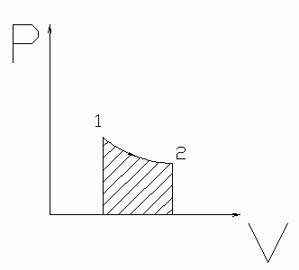 Для равновесных процессов суммарная работа будет равна сумме изменения объема помноженного на давление для каждого равновесного состояния. А, так как, равновесных состояний бесконечное количество,работа процесса в P-V диаграмме будет численно равна площади под графиком процесса. И, если объем увеличивается, работа газом совершается, а если уменьшается – над газом работу совершают.