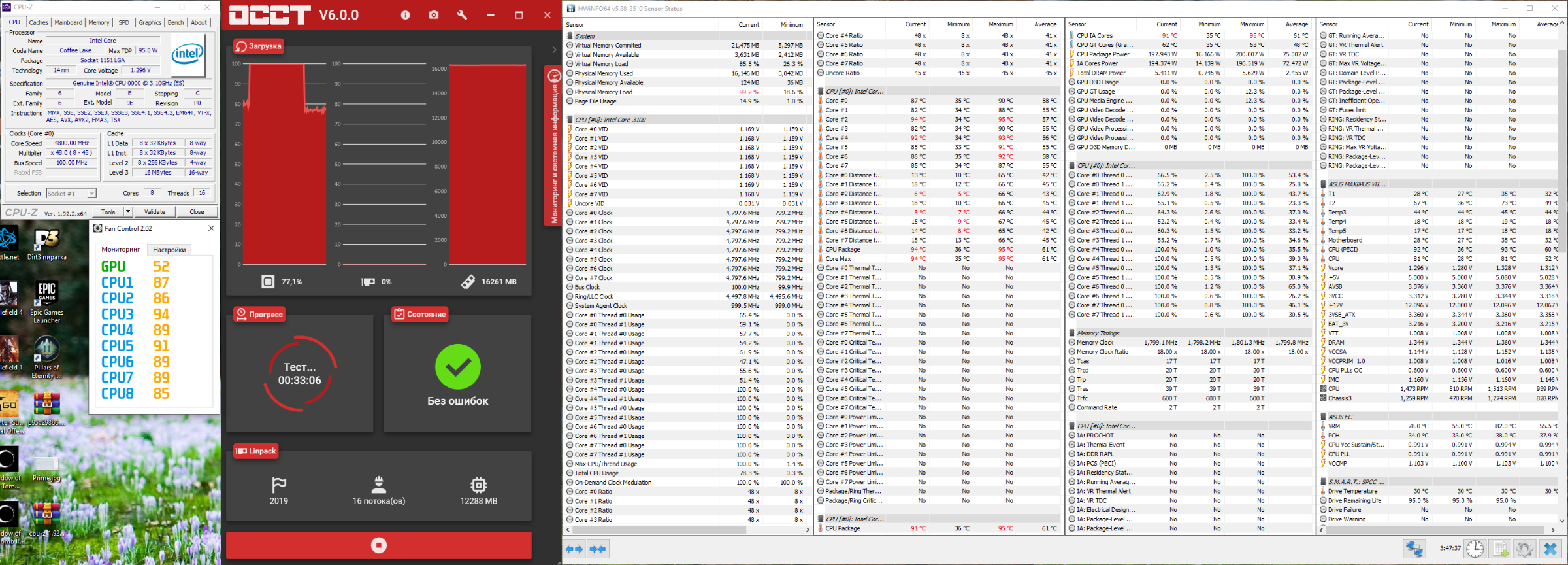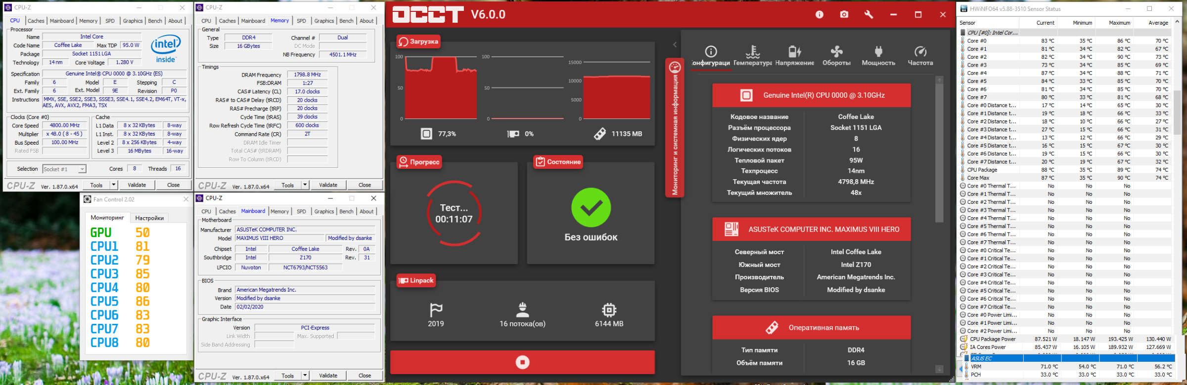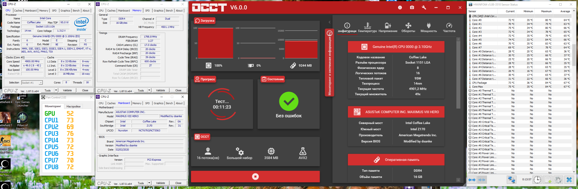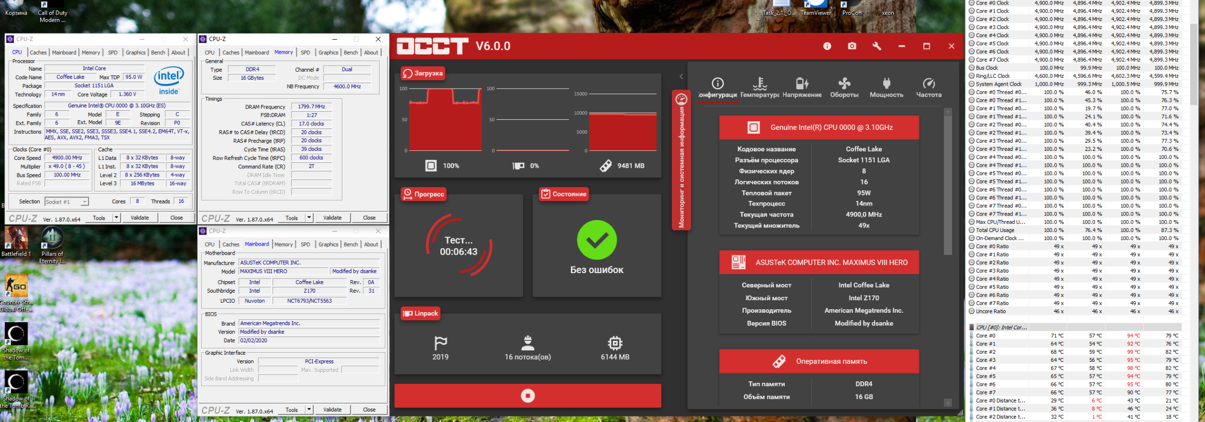 Intel QQBY (Инженерный образец 9900k) в меметичной Asus Maximus VIII Hero