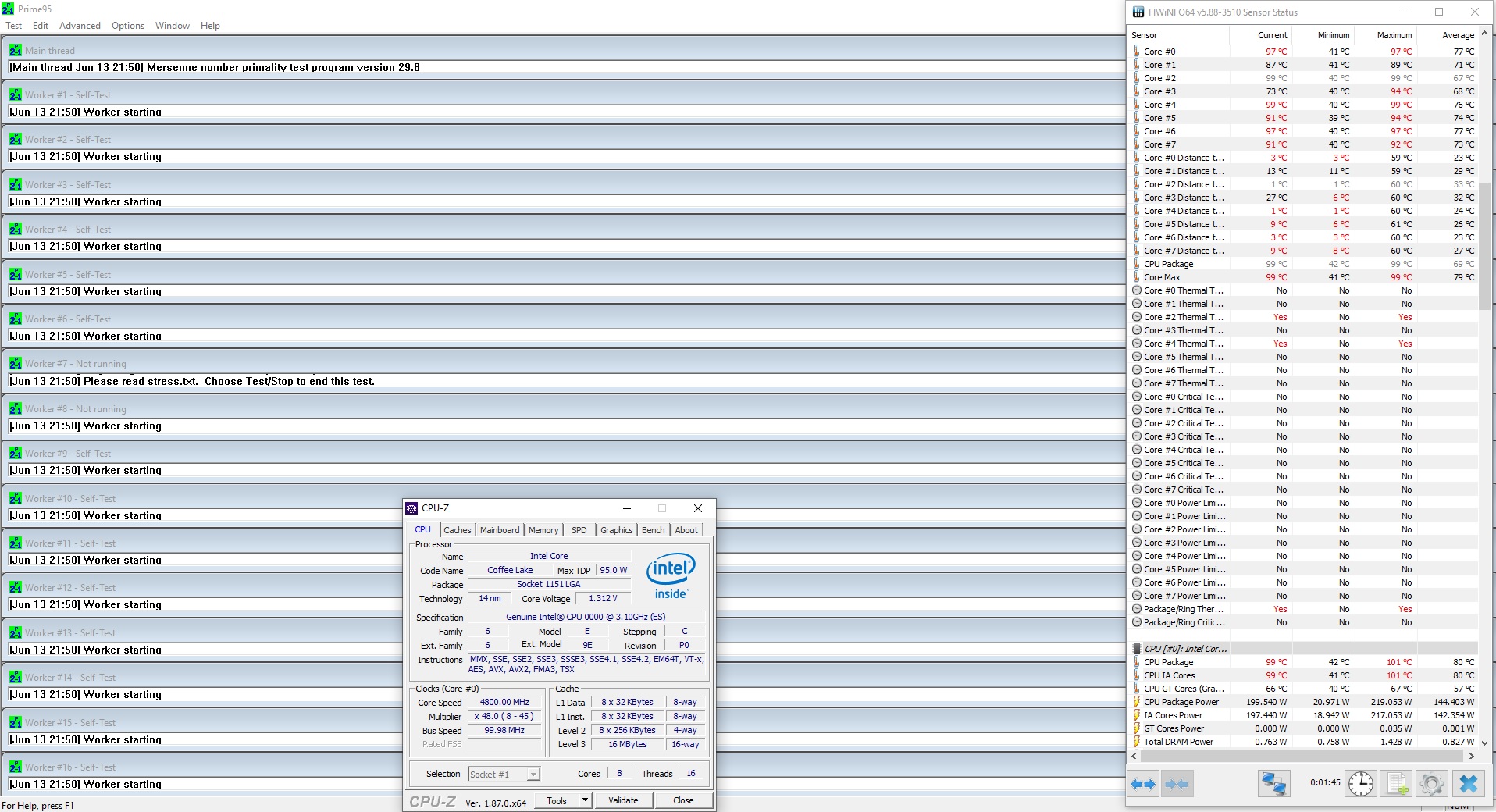 Ну и крайне небольшое дополнение к теме разгона. Если тестировать при помощи Prime95 Small ffts, то те же 4.8GHz уже требуют ориентировочно 1.33v, потребляемый процессором ток возрастает свыше 220w и моё СО абсолютно не справляется, часть ядер мигом выпадает из тестирования из-за термал-троттлинга. Но я считаю, что настолько жёсткие тесты это то, что называется "тесты ради тестов". Я считаю, что такое тестирование является "оверкильным", и что моей методики, описанной выше, абсолютно достаточно для выявления абсолютной стабильности в повседневных задачах. Если кто-то считает иначе, давайте останемся каждый при своём мнении.