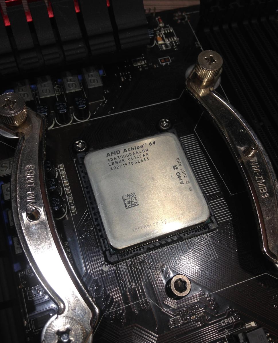 Ах да, к сожалению, фотографий до установки у меня нет, т.к. распаковку и запуск снимал на видео одним куском, потому, процессор на всех фотографиях в статье уже после первой установки в сокет и имеет соответствующие следы.