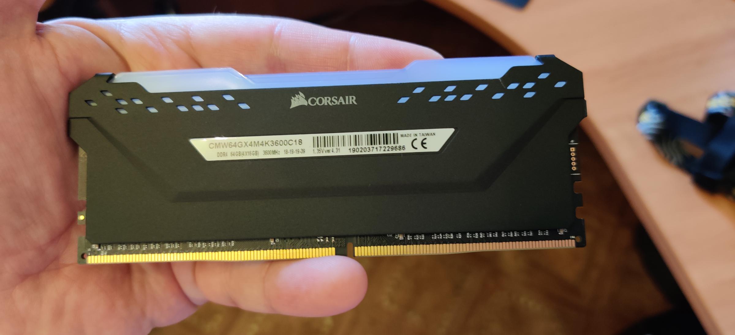 При выборе в феврале 2020 года, в документации к материнке не так много было перечислено гарантировано совместимых модулей с частотой 3600 и выше, да и те которые были, отсутствовали в продаже (в адекватных магазинах). Этот комплект был взят из расчета нормальной работы сразу 4 модулей, хотя в документации к материнке была гарантирована работа вместе такой же памяти но только 2 модулей. Я предположил что этот комплект хотя бы тестировали вместе, и 4 модуля из 1 комплекта должны работать вместе, но понятное дело тут на 100% не угадаешь. В общем модули вместе заработали, но свой разгонный профиль на 3600 они не взяли, только 3533 и с повышенным прилично напряжением. Я провел очень много времени в тестировании памяти с различными настройками (недавно даже менял их местами в слотах), но хорошего результата я не добился. Я знал про эти проблемы заранее, так как для разгонов и совместимости желательна 2-х слотовая материнка и соответственно всего 2 модуля памяти (или 2 модуля в 4-х слотовой, но мне больше объём важен). В общем рабочий вариант на постоянку у меня остался такой: 3466 мГц и основные тайминги 16-17-16-35-55, напряжение 1.35В. Меня вполне устраивает. Возможно потом, когда выйдет новый BIOS, попробую еще.