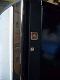 Под декоративной дверцей скрывается внешность довольно спартанского вида, содержащая заглушки отсеков внешних приводов, индикаторы, вентиляционную решетку, а также экран и кнопки управления реобасом. Как видно внутренняя сторона декоративной дверцы имеет вентиляционные прорези лишь напротив фронтального вентилятора, что видится вполне разумным, т.к. препятствует доступу пыли к приводам и способствует снижению уровня шума от них. Также по центру находится круглое отверстие загадочного назначения, изначально прикрытое заглушкой, которая имеет склонность к отчаянной вибрации, поэтому она была сразу же снята.
