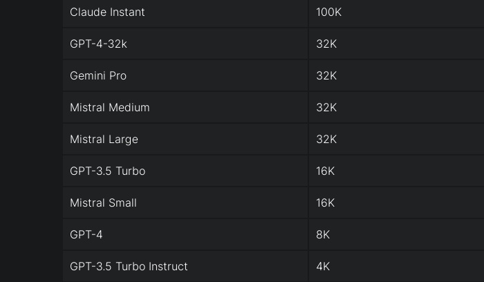 Контекстные окна ещё нескольких популярных ИИ. Бесплатная версия ChatGPT сейчас имеет контекстное окно в 16 тысяч токенов