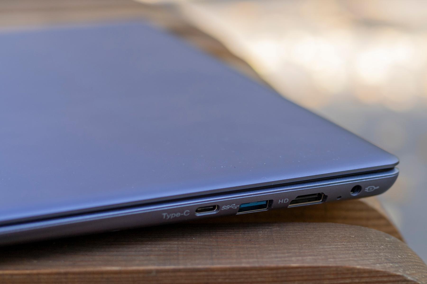 Все разъёмы находятся на левой и правой гранях – среди них два USB-A версии 2.0, один отличающийся по цвету USB-A 3.0, а также HDMI 1.4 и USB-C 3.1 для подключения различных устройств, но без возможности зарядки. Возможно, вам будет ещё не хватать слота для карты памяти.