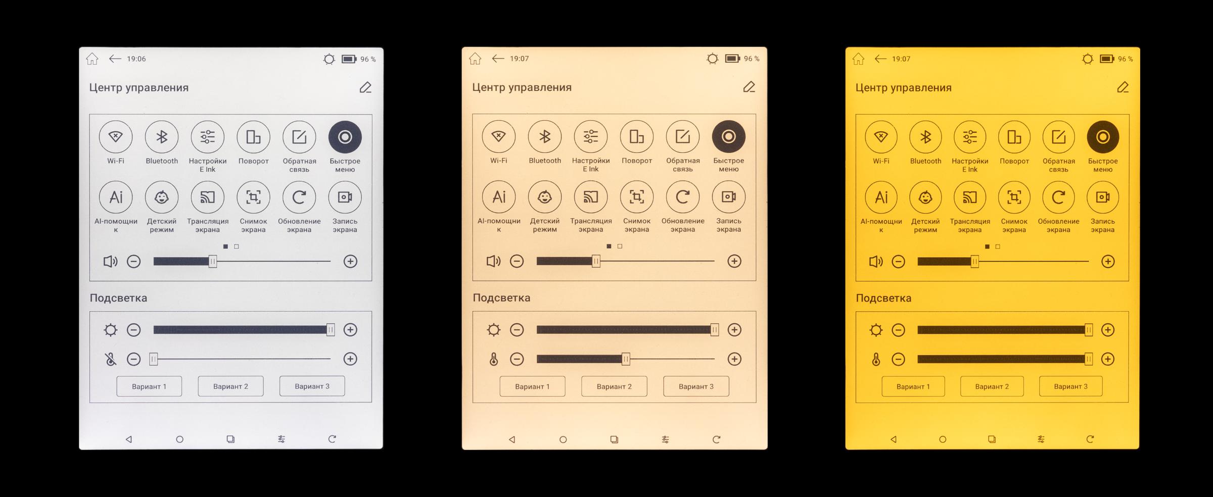 Подсветка MOON Light 2 позволяет регулировать яркость и цветовую температуру, поэтому читать становится комфортно как днём, так и ночью. Максимальной яркости примерно в 300 нитов вполне достаточно для любых вариантов использования, ведь экран почти не бликует, в чём он гораздо лучше дисплеев обычных смартфонов и планшетов. На улице и в хорошо освещённых помещениях всё отлично видно и без подсветки. Минимальная яркость менее 1 нита, а значит даже в полной темноте удастся подобрать оптимальные настройки. Мерцания не наблюдается при любой яркости.