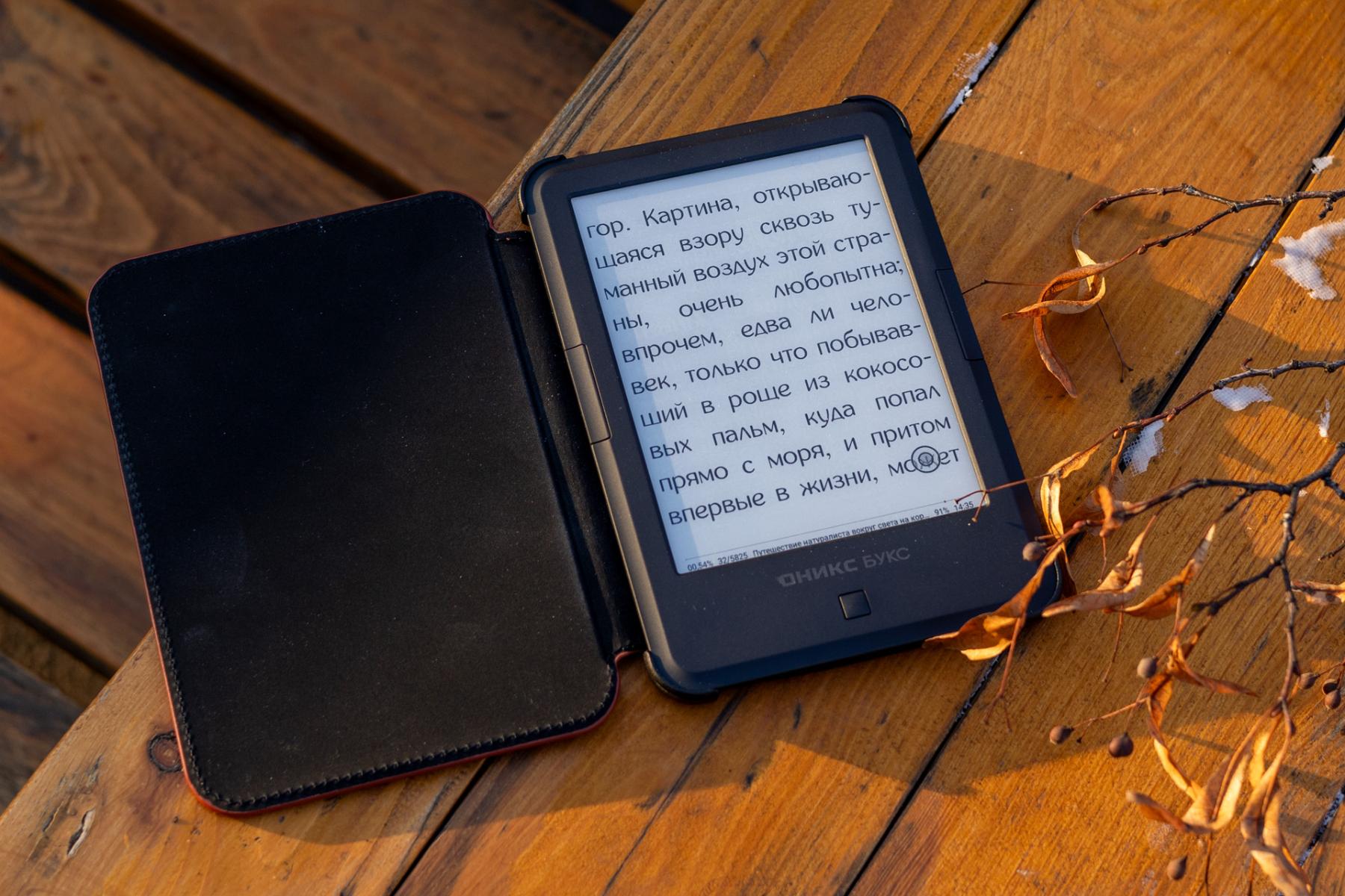 В комплекте с героем обзора будет не только кабель (USB-A – USB-C) и руководство пользователя, а ещё весьма прочный частично пластиковый чехол, который наверняка защитит ридер в большинстве случаев. Такой же или почти такой же чехол вы могли видеть и в более ранних ридерах серии Дарвин – у него красивая внешняя сторона, а при его закрытии/открытии экран электронной книги отключается и включается соответственно (эти действия можно отключить в настройках). С чехлом вес героя обзора увеличивается на 107 граммов, что на самом деле почти не ощущается в руках. Отмечу ещё красивую коробку с магнитной застёжкой – как подарок Оникс Букс Дарвин 11 будет выглядеть замечательно.