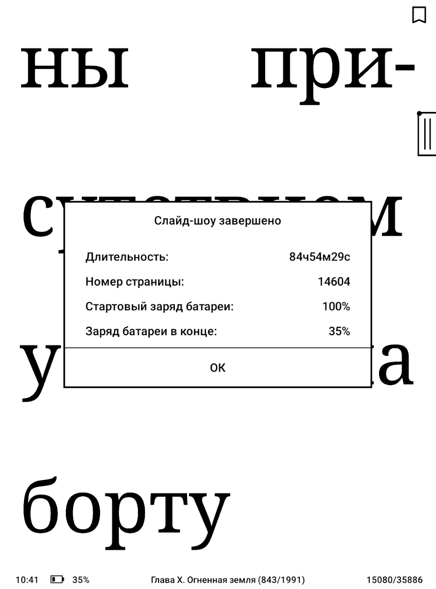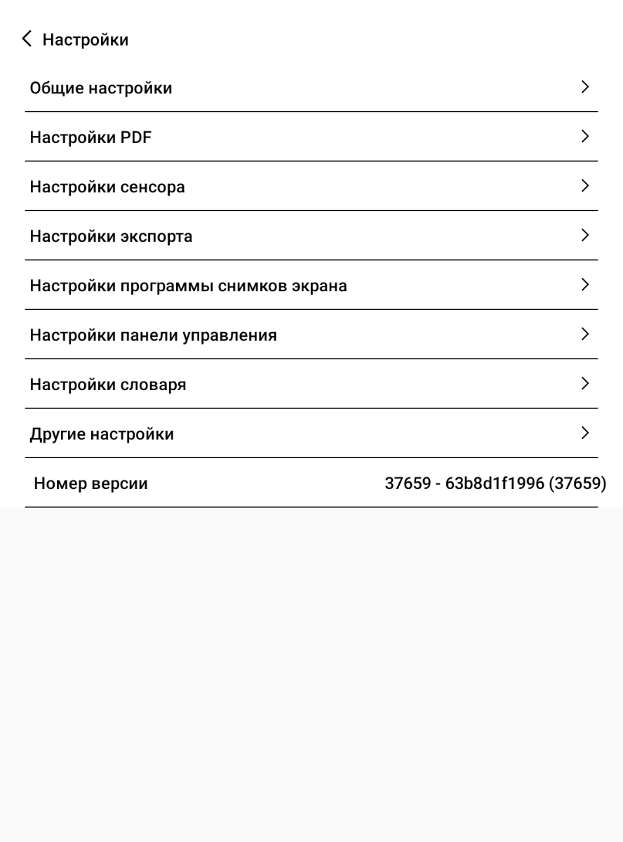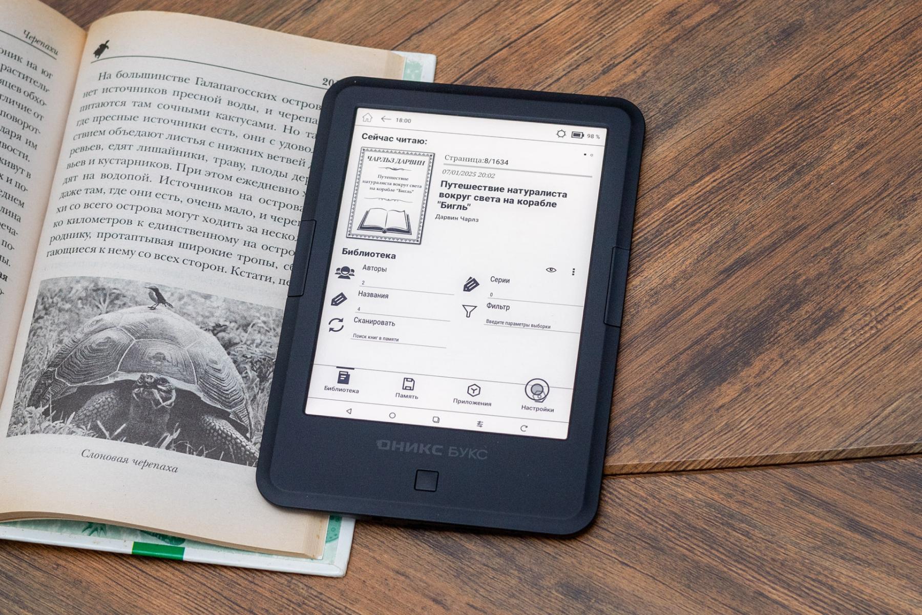 Экран Оникс Букс Дарвин 11 с диагональю 6 дюймов, разрешением 1448 x 1072 точек и отображением 16 оттенков серого. Здесь важно упомянуть о соотношении сторон 4:3 (а не модные нынче 2:1, 20:9 и т.д.), которое даёт заметно большую площадь экрана, чем у современных смартфонов с дисплеями такой же или даже большей диагонали. Плотность пикселей по меркам ридеров высокая – 300 ppi, и за счёт использования E-ink матрицы Carta 1300 удалось получить весьма чёткое изображение, когда даже на крупном тексте едва ли получится увидеть лесенку из отдельных пикселей (правда всё зависит от выставленных настроек). Никуда не делась знакомая многим пользователям технология SNOW Field, эффективно убирающая остатки предыдущего изображения, но по-прежнему она доступна только в некоторых приложениях.