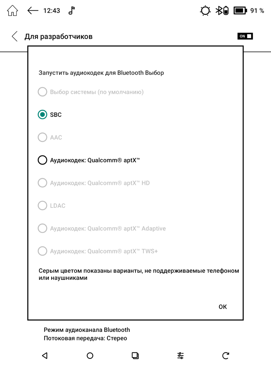 Bluetooth 5.0 в первую очередь предназначен для подключения беспроводных наушников, хотя можно и с прочими гаджетами поэкспериментировать. Изначально поддерживается только кодек SBC, однако через меню разработчика ещё включается aptX (он не сбрасывается после выхода из настроек), правда для активации нужен сторонний софт, позволяющий перейти в обычные для Android настройки. Скорость подключения по Wi-Fi 802.11ac достигает примерно 350 Мбит/с на 5 ГГц – всё как у мобильных устройств с аналогичной версией этого двухдиапазонного беспроводного модуля.