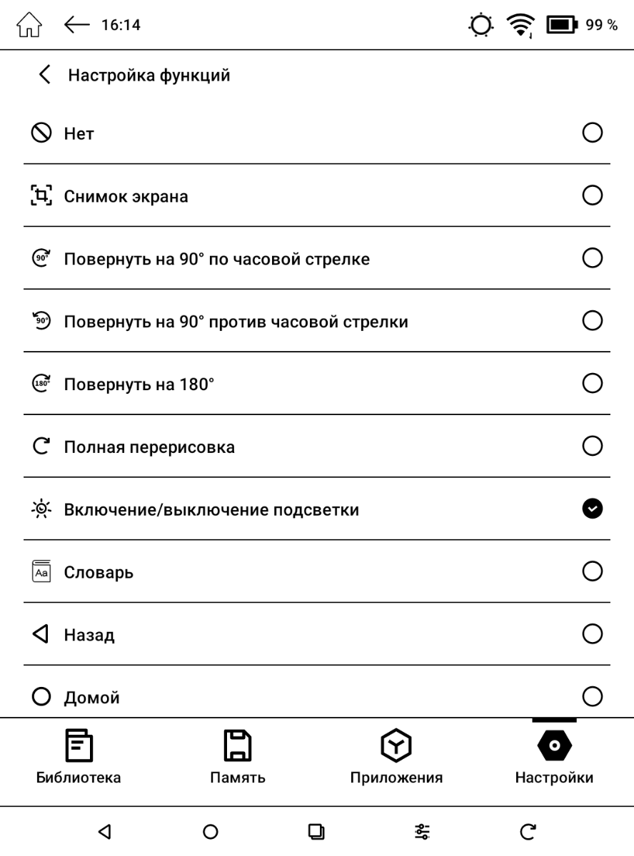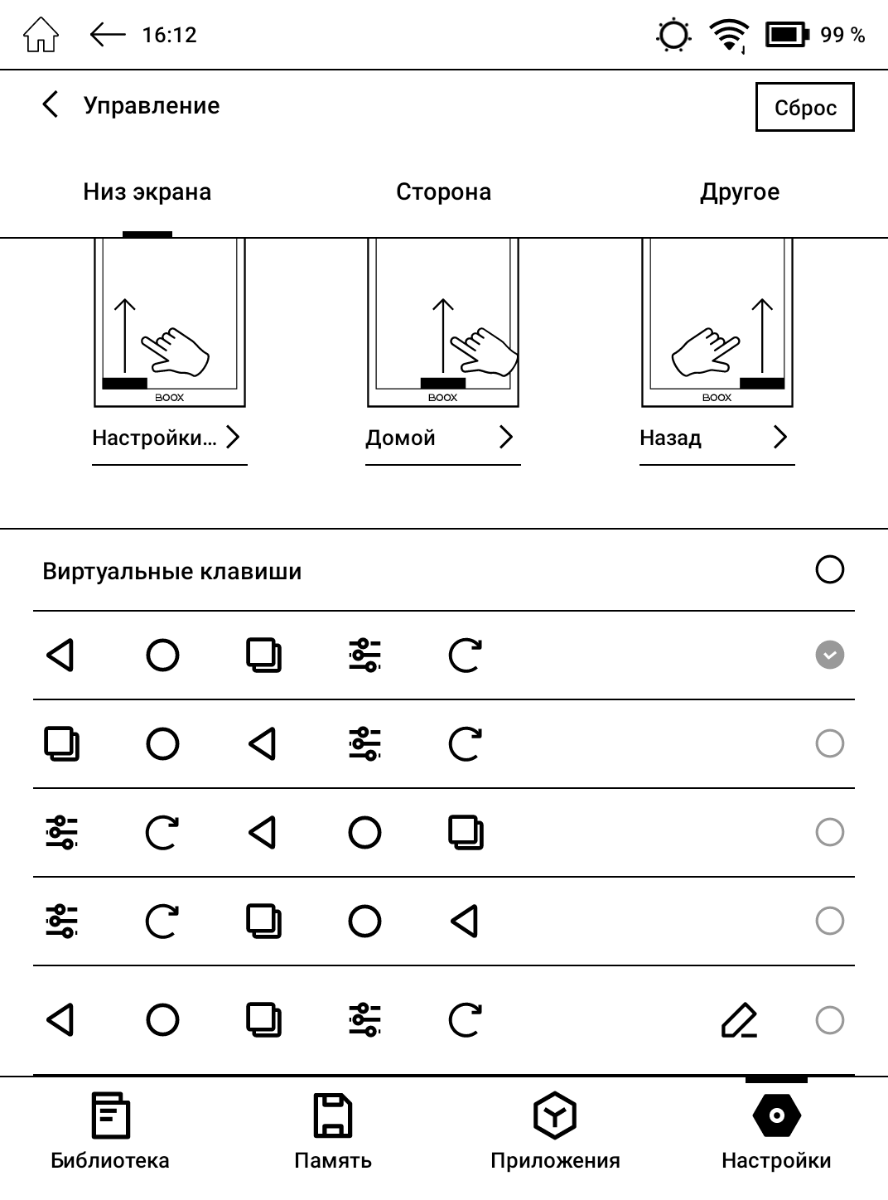На передней стороне помимо углублённого с целью защиты экрана есть три механические кнопки управления, которые изначально используются для перелистывания, быстрого включения/отключения подсветки и прочих действий – всего 6 вариантов, поскольку возможны как одиночные нажатия, так и длительные зажатия. К тому же абсолютно все кнопки удаётся переназначить через настройки операционной системы, так что с учётом сенсорного экрана, жестов и дополнительной виртуальной кнопки управление получается весьма удобным.