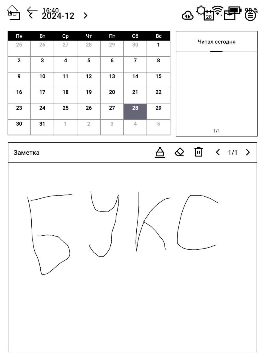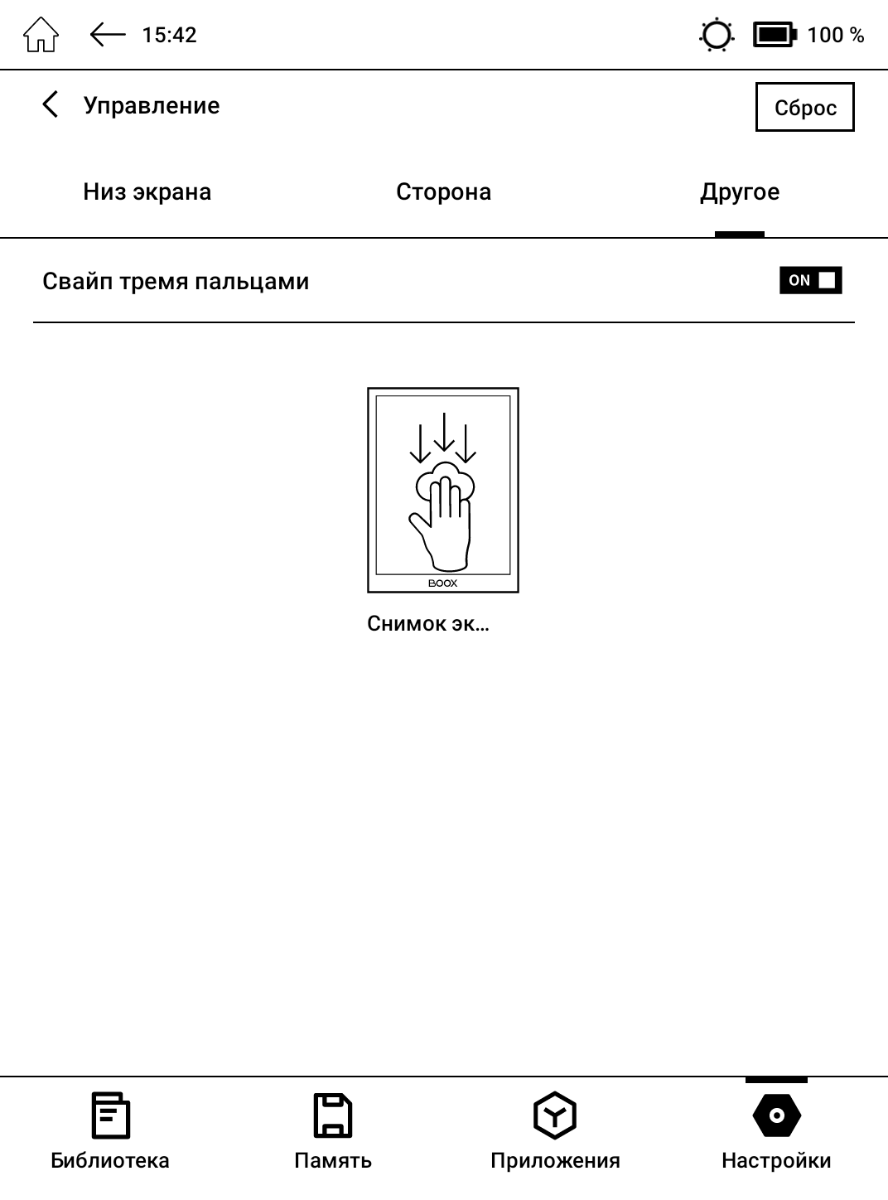 Мультитач рассчитан на поддержку до 5 одновременных касаний, и это заметно улучшило отзывчивость экрана, ведь раньше в электронных книгах чаще встречался вариант на 2 касания. Ещё теперь доступны некоторые жесты вроде снятия скриншота тремя пальцами. Различный софт показывает, что частота обновления экрана 40 Гц, а частота опроса сенсорного слоя по тестам – примерно 90 Гц.