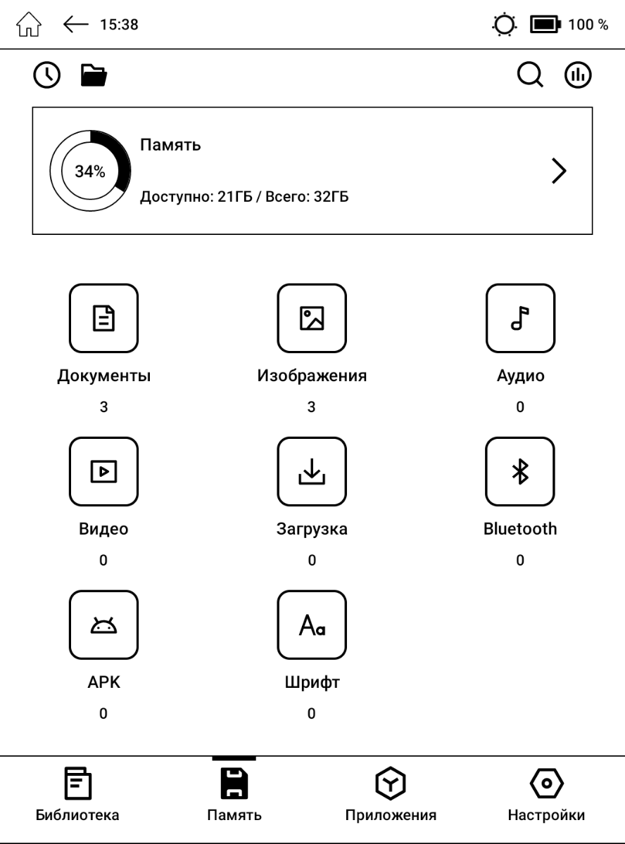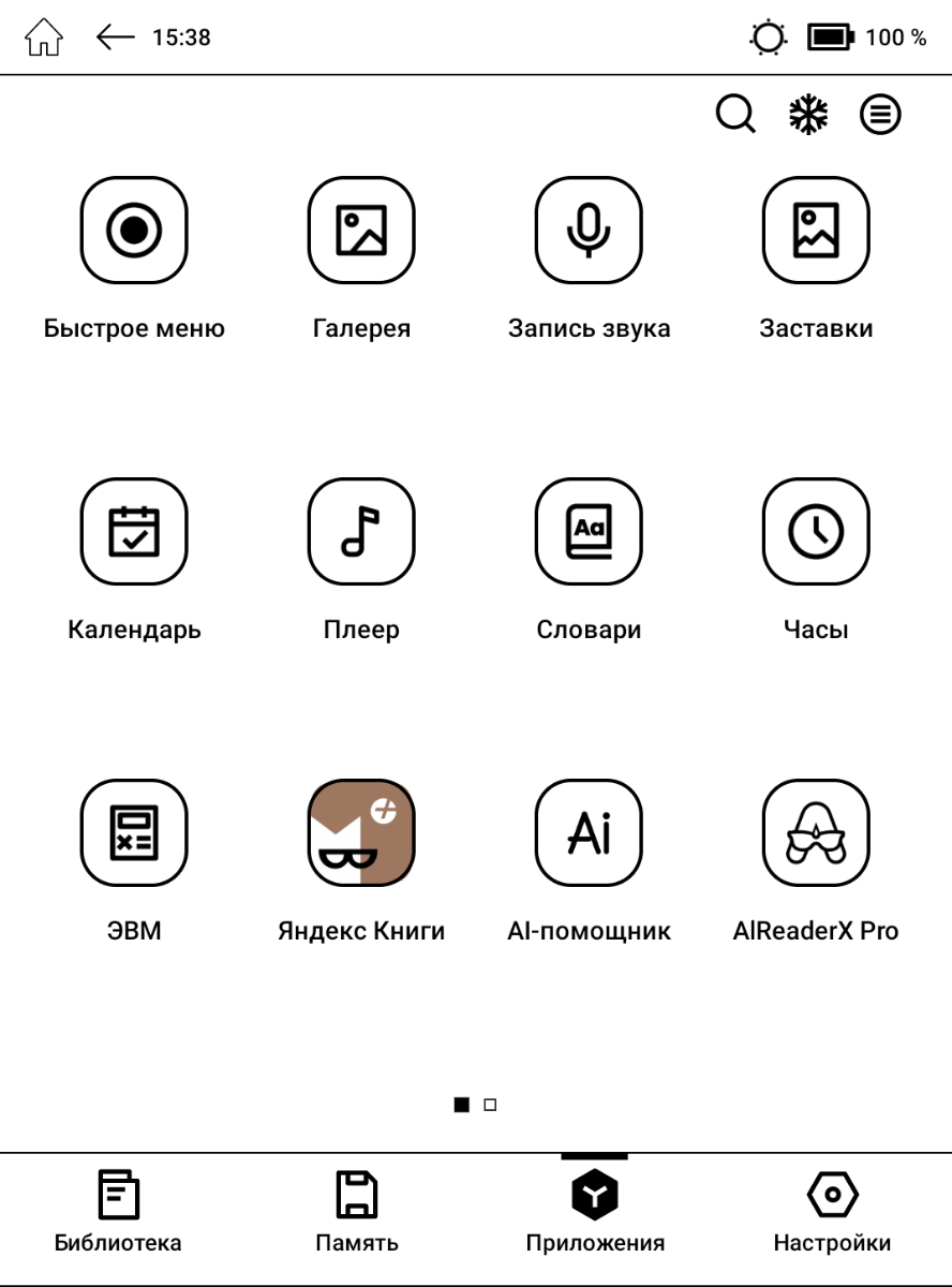 Предустановлены позволяющий просматривать различный контент браузер, галерея для изображений, музыкальный плеер, калькулятор, софт для скачивания словарей, Яндекс.Книги и прочее. С учётом доступности Google Play и возможности установки приложений из сторонних источников всё это может показаться не таким важным, однако не каждый софт хорошо оптимизирован под ридер, а с предустановленными вариантами как правило никаких проблем не возникает.