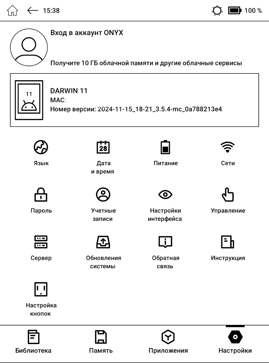 За работу Оникс Букс Дарвин 11 отвечает 8-ядерный чипсет Qualcomm Snapdragon 662, и хотя кроме ридеров сейчас такое решение мало где используется, для чтения книг, прослушивания аудио и просмотра информации в браузере его более чем достаточно, к тому же устройства производителя хорошо работают и на 4-ядерных процессорах (что доказывает в том числе Onyx Boox Darwin X). Тем не менее синтетические тесты лучше не запускать – похвастаться здесь 11 Дарвину нечем. Пользовательской памяти в девайсе 32 ГБ стандарта eMMC – даже с учётом того, что изначально доступно 21 ГБ, карта памяти явно потребуется далеко не всем пользователям – наибольшей популярностью ведь пользуются небольшие по размеру текстовые файлы FB2 и ePub. Оперативной памяти 2 ГБ LPDDR4X – для компактного ридера этого тоже вполне хватает. Включение устройства у меня занимает чуть более 40 секунд, во всяком случае при небольшом количестве книг и стороннего софта, и здесь выигрышнее смотрится режим сна с почти моментальным переходом к чтению или просто последнему экрану, но придётся немного пожертвовать автономностью.