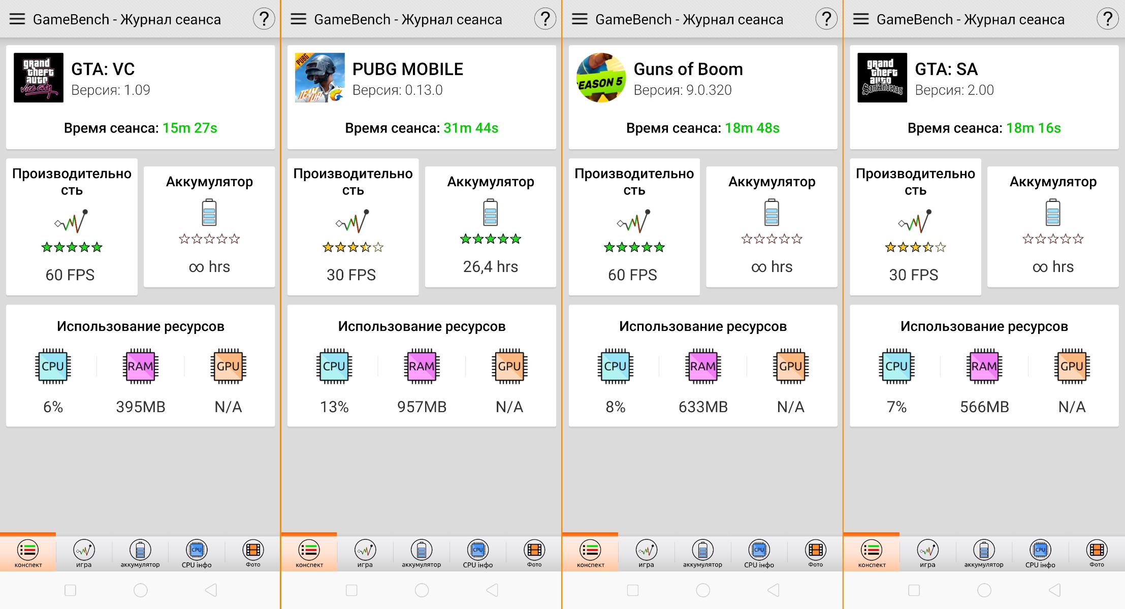 - PUBG Mobile - 30 FPS (графика "высоко", частота кадров "высоко").