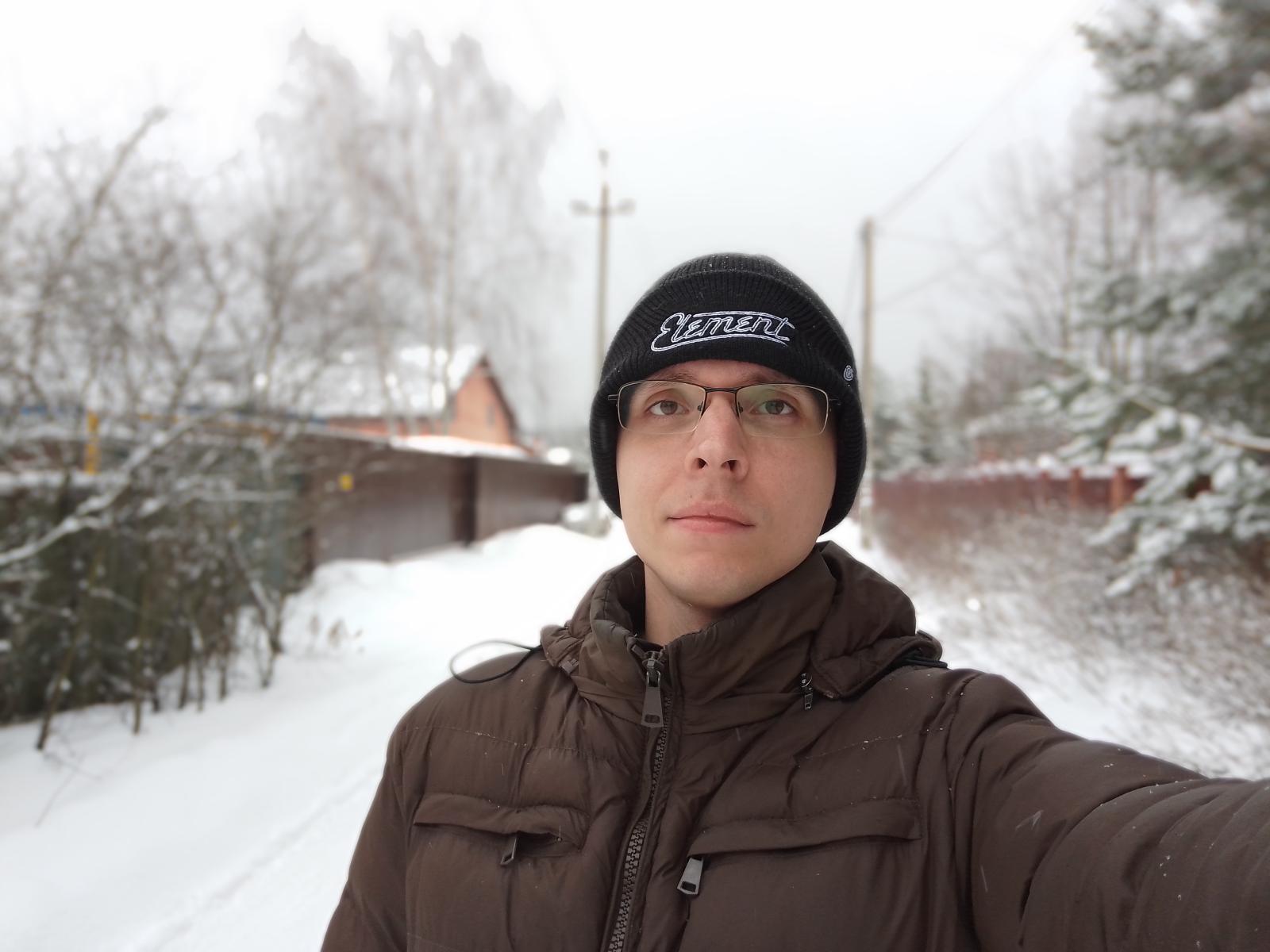 Пара задних камер с разрешением 13 Мп (f/2.0) и 0.08 Мп годятся для использования при хорошем освещении. Есть даже профессиональный режим с небольшим количеством ручных настроек. При этом есть сомнения в необходимости дополнительного модуля с низким разрешением – эффект размытия фона вы и без него сможете сделать, но в теории он может улучшить работу искусственного интеллекта.