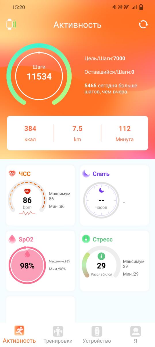 Из основных функций часов – измерение пульса и SPO2, довольно точный мониторинг сна, тренировка дыхания, определение эмоций и целая сотня различных тренировок. Несколько настораживает то, что часы измеряют различные показали как на руке, так и у предметов, но подобное наблюдается и у многочисленных конкурентов. Во время физической активности всё-таки заметно, что частота пульса увеличивается. Вбиваем верхнее и нижнее допустимое значение — и часы предупредят нас об аномальных показателях. Более точным представляется измерение шагов – ошибок быть не должно, во всяком случае мои поездки на метро, электричке и автомобиле не повлияли на конечный результат.