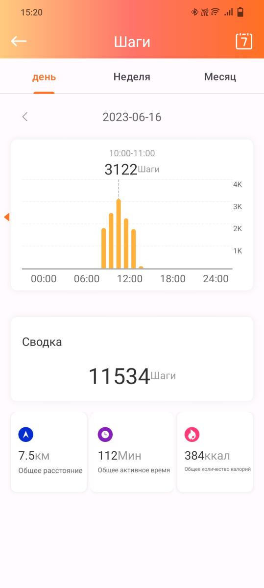 В приложении удаётся просмотреть различную статистику по дням, неделям и месяцам, будь то количество шагов, частота сердечных сокращений или, к примеру, данные о сне.