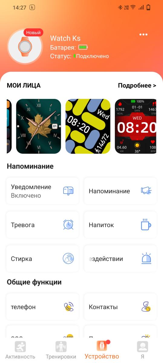 Для подключения к смартфону и доступа к подробным настройкам и статистическим данным, часть из которых недоступна на самих часах, необходимо воспользоваться приложением Kie OS для операционных систем Android и iOS. Мы же рассмотрим софт для Android, имеющийся в популярном магазине приложений Google Play. Для сопряжение достаточно включить Bluetooth и выдать запрашиваемые приложением разрешения – беспроводное соединение будет стабильным даже в нескольких метрах от смартфона.