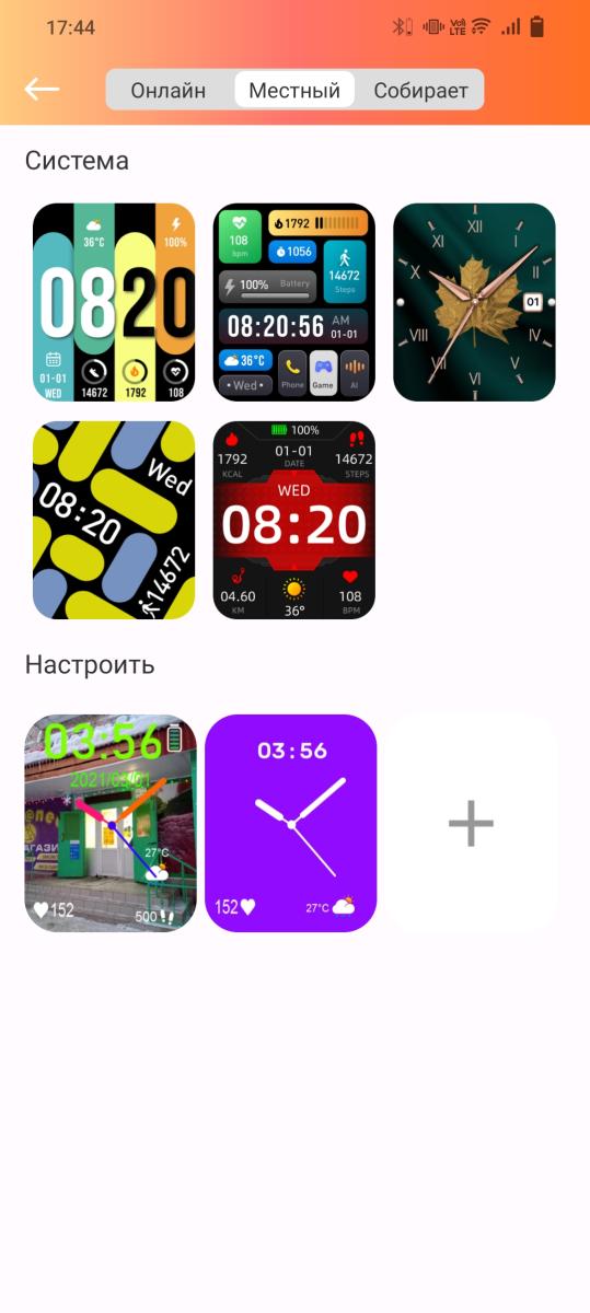 Можно выбрать один из множества дополнительных циферблатов, который будет загружен в часы, и в любой момент поменять его на другой. Есть и ещё один интересный вариант – собственный циферблат, когда изображение добавляется из галереи или камеры, а элементы интерфейса получается расположить в любых удобных местах.