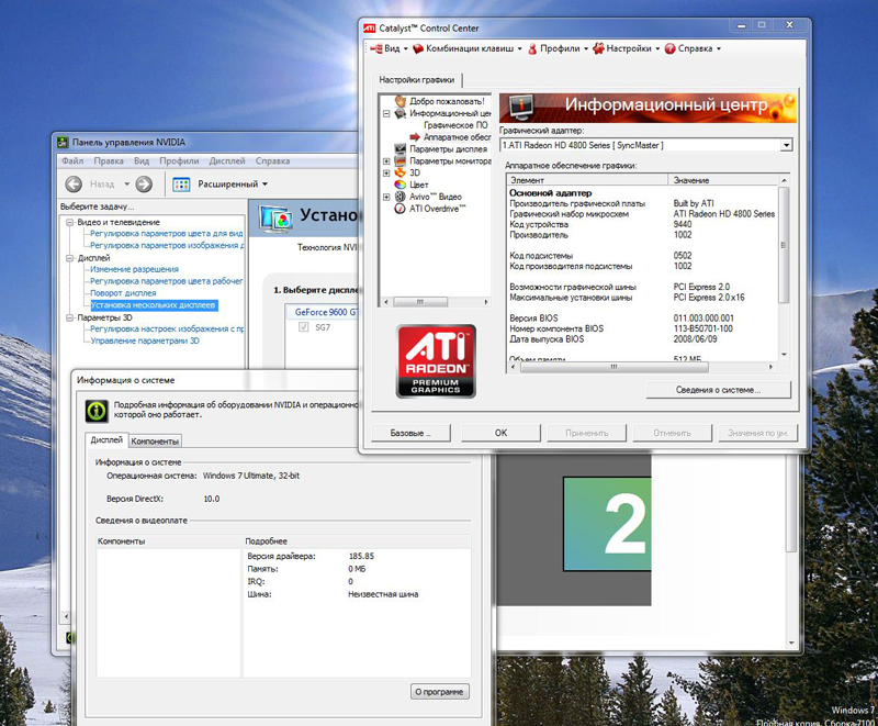 И так. Вначале была установленна 9600GT и драйвера 185.85 с PhysX'сом из комплекта. Затем она была переставленна во второй слот, а первый заняла HD4870. Под нее так же были установленны драйвера 8.612. Перезагрузка и.... облом