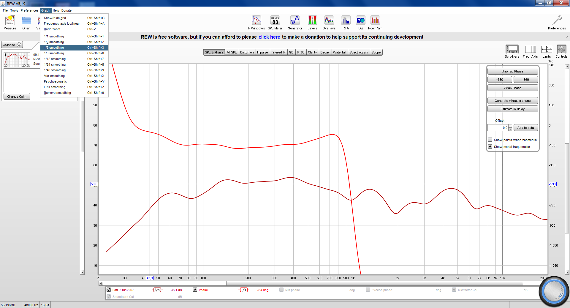 Ну и напоследок оценка искажений с микрофона Филипс в ПО ARTA.
