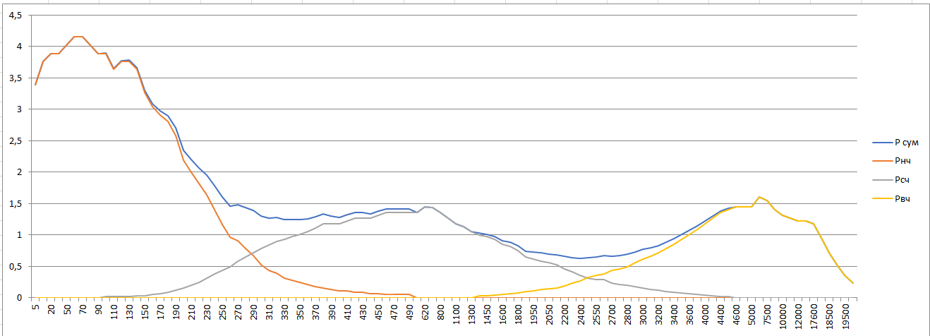 Микрофон устанавливался на расстоянии в 1 метр на оси ВЧ динамика.