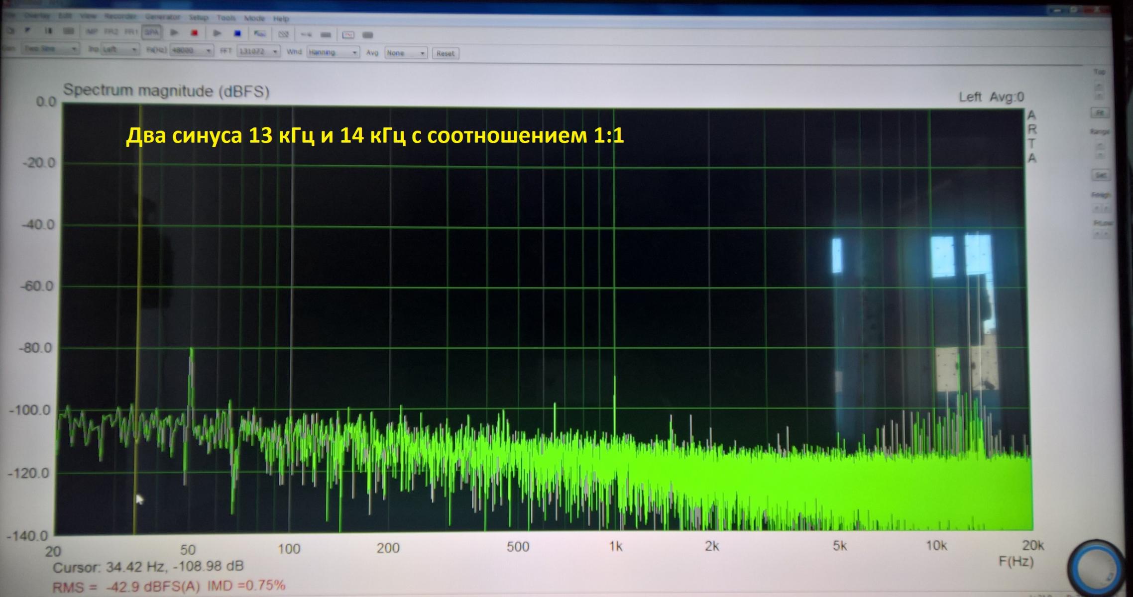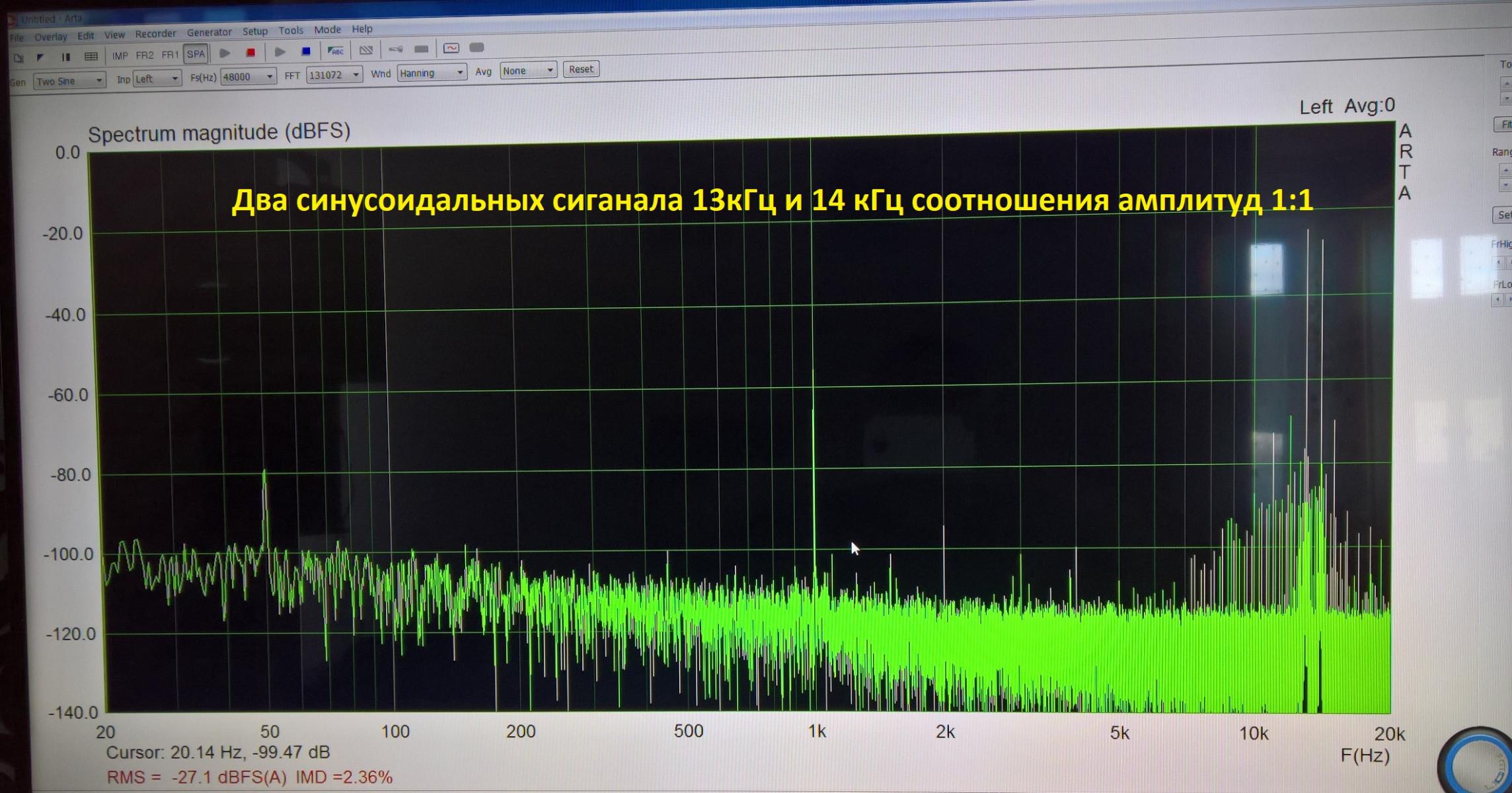 интермодуляция частот 13 и 14 кГц при средней громкости