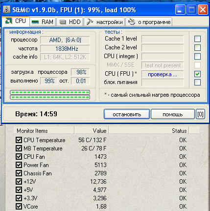 * Процессор: AMD AthlonXP 2500+/1833МГц (166*11, 1.65v, locked);