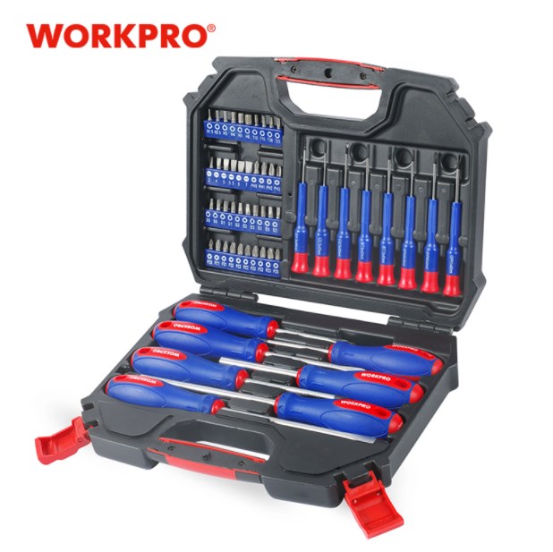 Компания WORKPRO производит и продает много различных наборов инструментов, среди которых хорошо выделяется набор отверток. В данном наборе имеются практически все необходимые отвертки, которые покрывают большинство повседневных задач. Все отвертки поставляются в удобном пластиковом кейсе. Товар с доставкой из РФ продается по сниженной цене. Также стоит подчеркнуть высокое качество инструмента в целом.