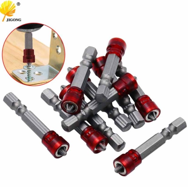 В данном лоте имеется шесть сменных бит. Благодаря специальной конструкции, саморезы надежно притягиваются к бите и даже при сильной встряске инструмента саморезы не вылетают. Подобные биты значительно облегчают выполнение большого объема работ