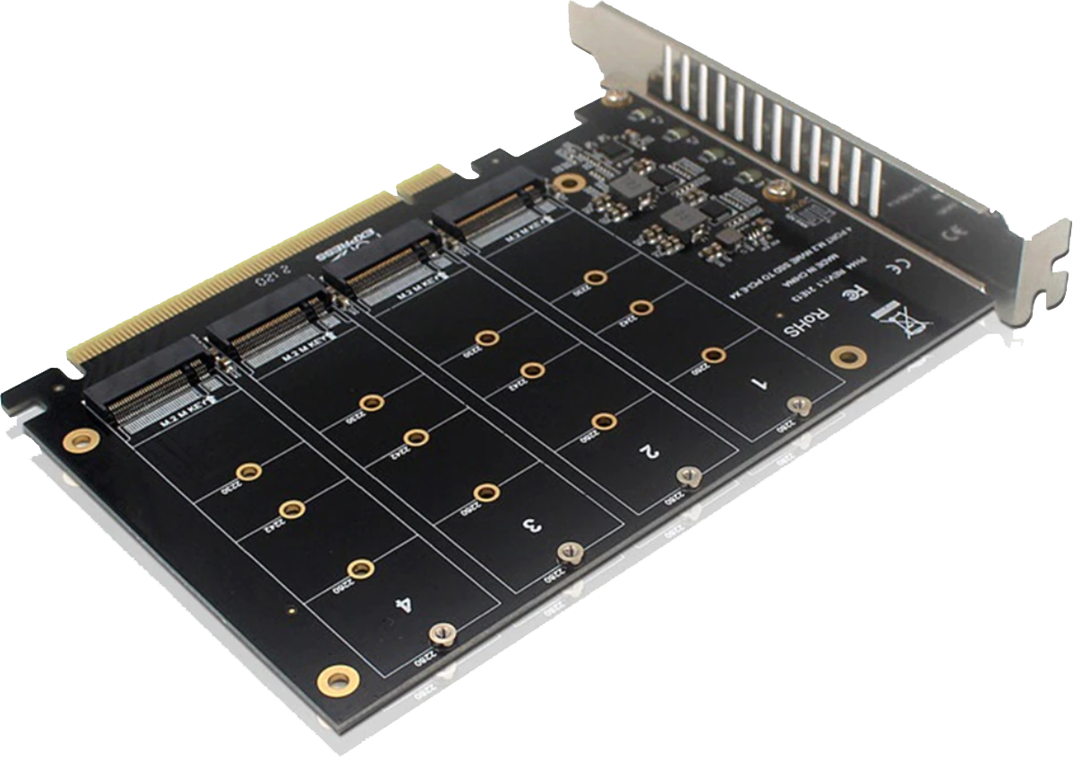 С JINGSHA X79 S8 все просто – PCI-E слоты недоразвитые и использовать их более одного практически не возможно, так как бифуркация работает не верно и даже при режиме 8х на видеокарту и 8х на второй слот можно будет использовать только один накопитель.